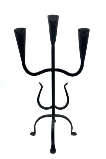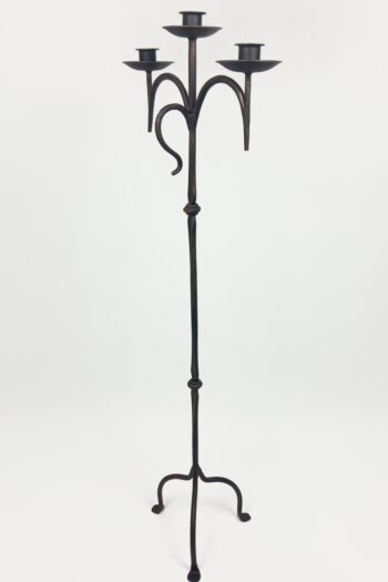 Hand Forged Iron Floor Candelabra 46.5″ (118cm) Antique Copper Patina 3-Arm Wide Base Stable Candle Holder Rustic Decor