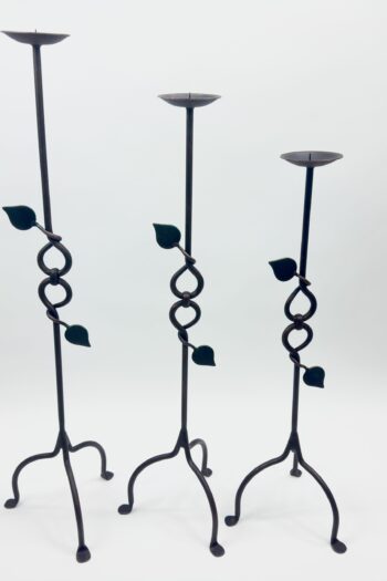 Hand Forged Iron Candelabra Set of 3 (80-100cm) Antique Copper Finish Sculpted Twist & Leaf Floor Set