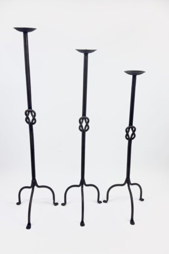 Hand Forged Iron Candelabra Set of 3 (82-102cm) Antique Copper Double Stem with Hercules Knot and Arched Base