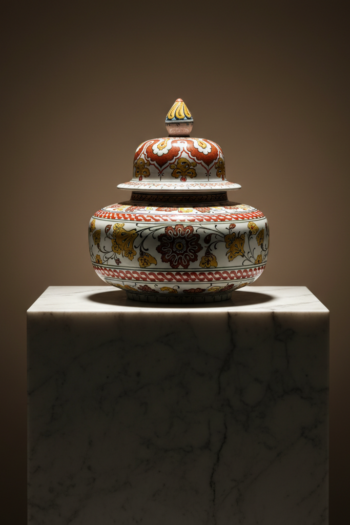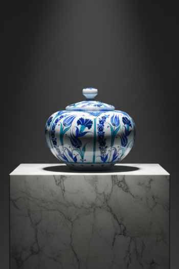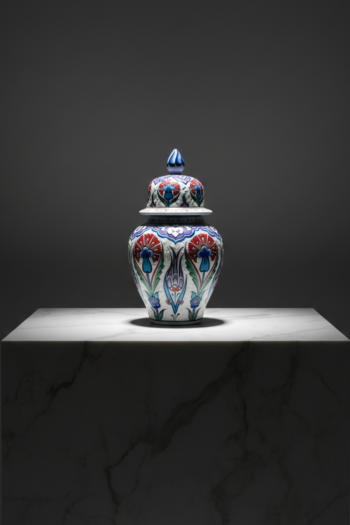 Handmade Ceramic Lidded Vase (30cm) Traditional Ottoman “Golden Horn” (Haliç) Style with Turquoise Bands – Decorative Art Object