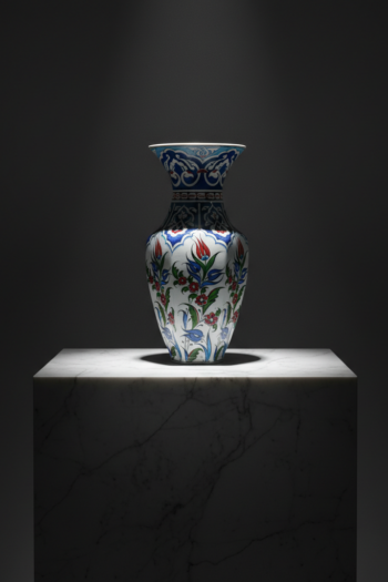 Handmade Ceramic “Gonca” Vase (25cm) – Classic Blue & White Floral Pattern – Traditional Ottoman Home Decor
