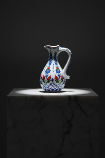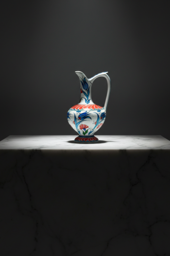 Handmade Ceramic Pitcher (25cm) – Red Tulips & Blue Hyacinths – Elegant Slender Form