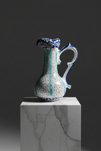 Handmade Ceramic Tall Pitcher (40cm) – Turquoise Stripes & Golden Horn Pattern – Mediterranean Decor