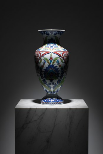 Handmade Ceramic Urn Vase (25cm) Vibrant Multi-Color Iznik Floral Garden Pattern – Traditional Turkish Decor