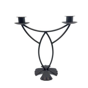 Hand Forged Iron Candelabra 15″ (38cm) Antique Patina Finish 2 Light Scrolled Ribbon Centerpiece