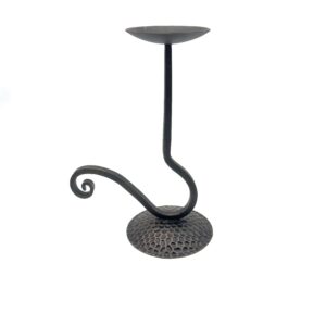 Hand Forged Iron Candle Holder 11″ (28cm) Antique Patina Finish Single Light Sculptural Centerpiece