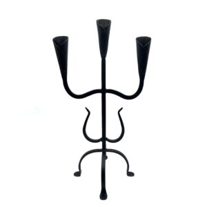Hand Forged Wrought Iron 3 Light Candelabra (Antique Patina) Solid Flat Base Candle Holder