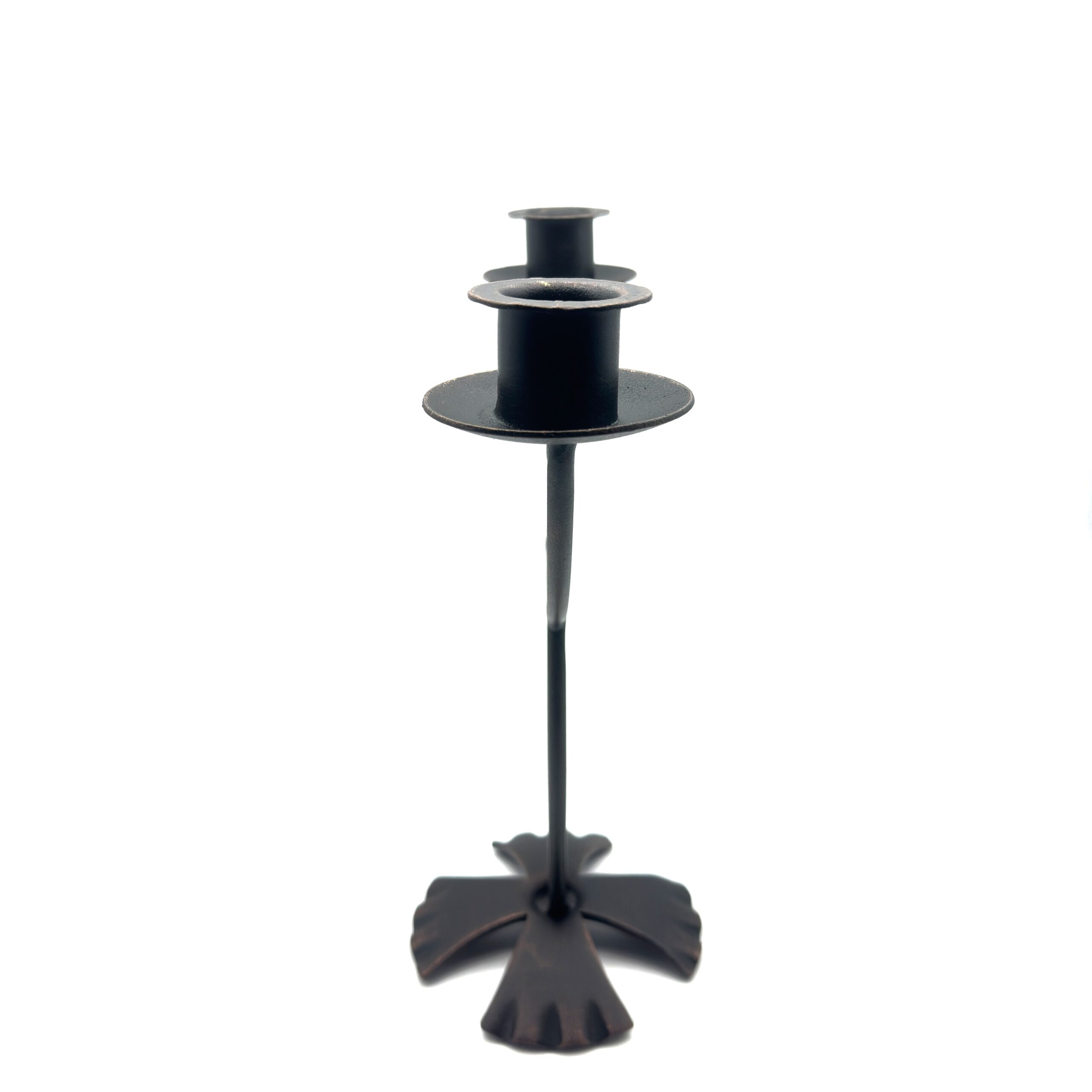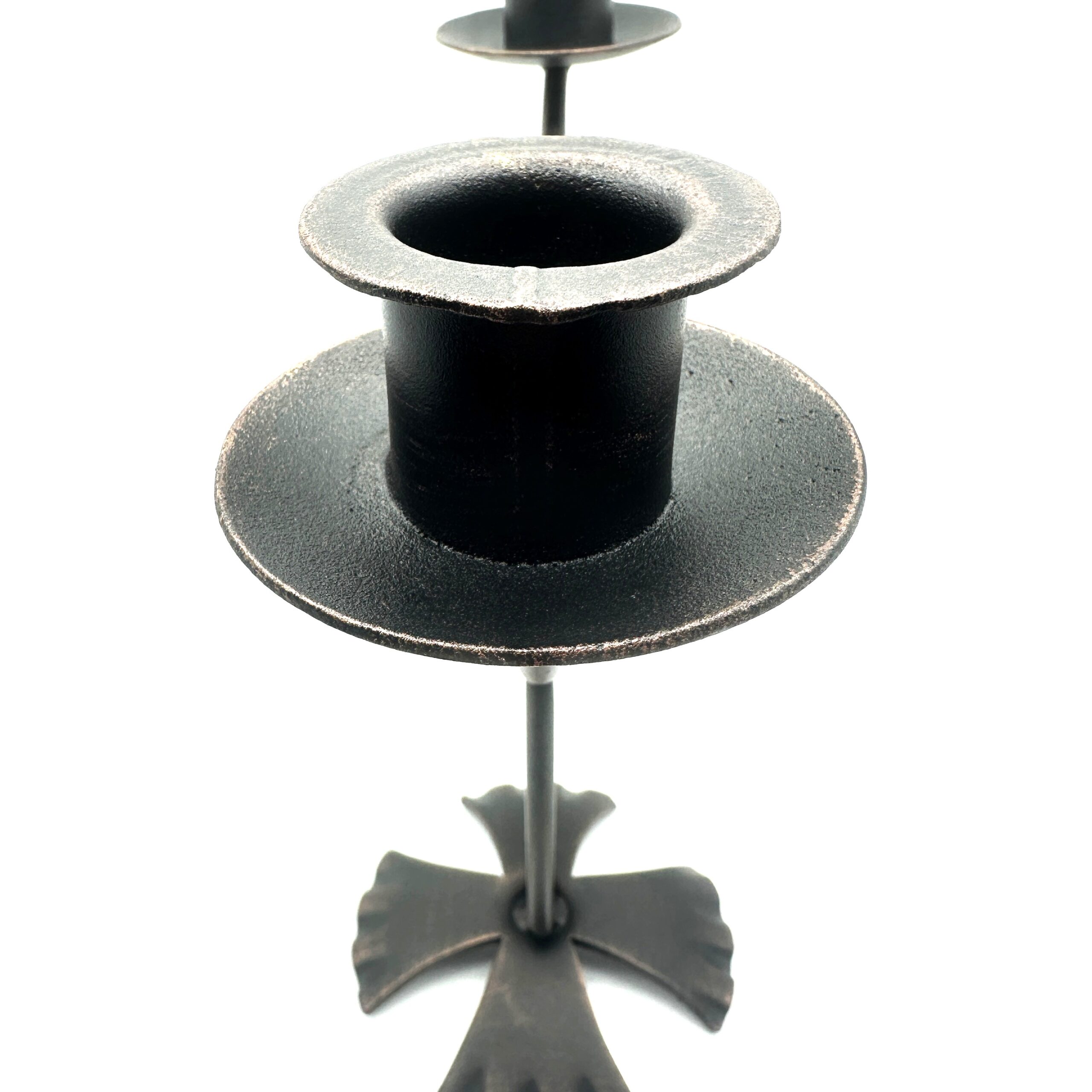 Hand Forged Iron Candle Holder 6″ (15cm) Antique Patina Finish 2 Light Two Tier Pillar Centerpiece