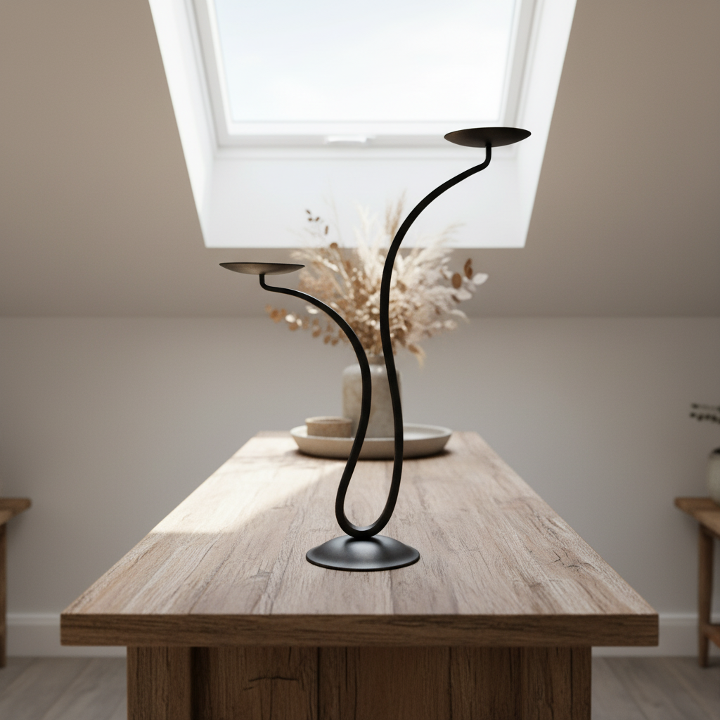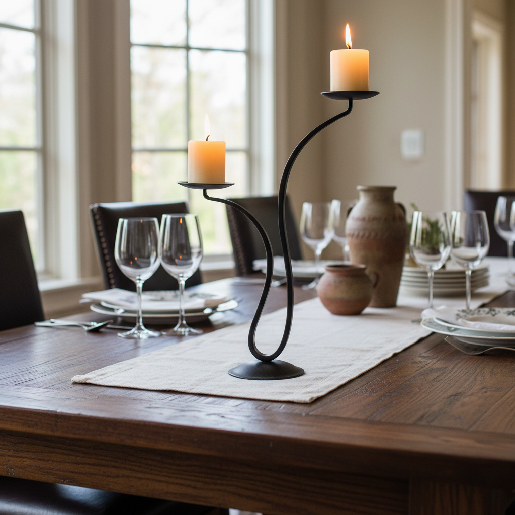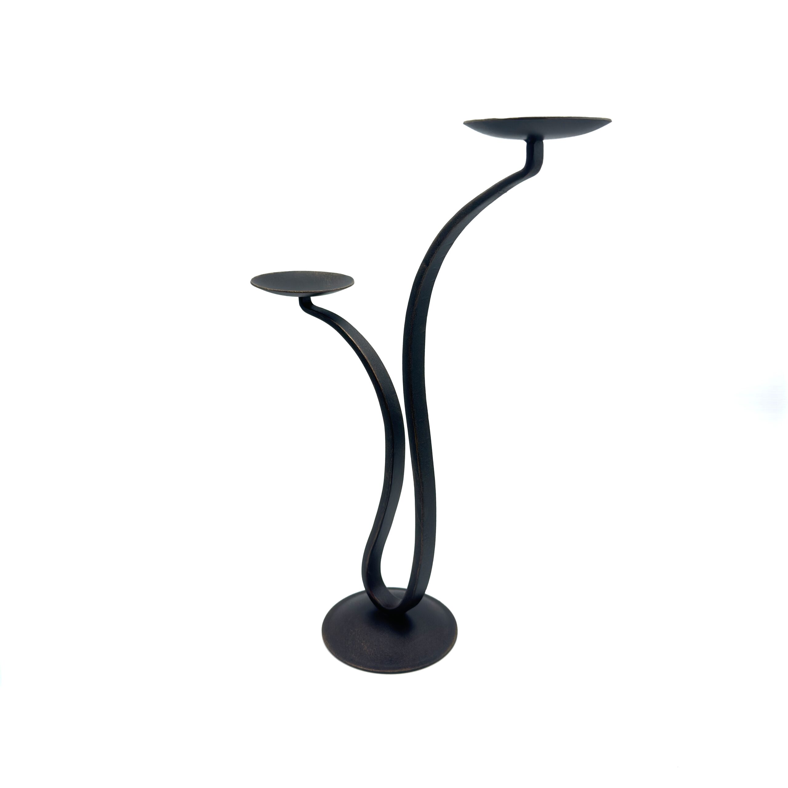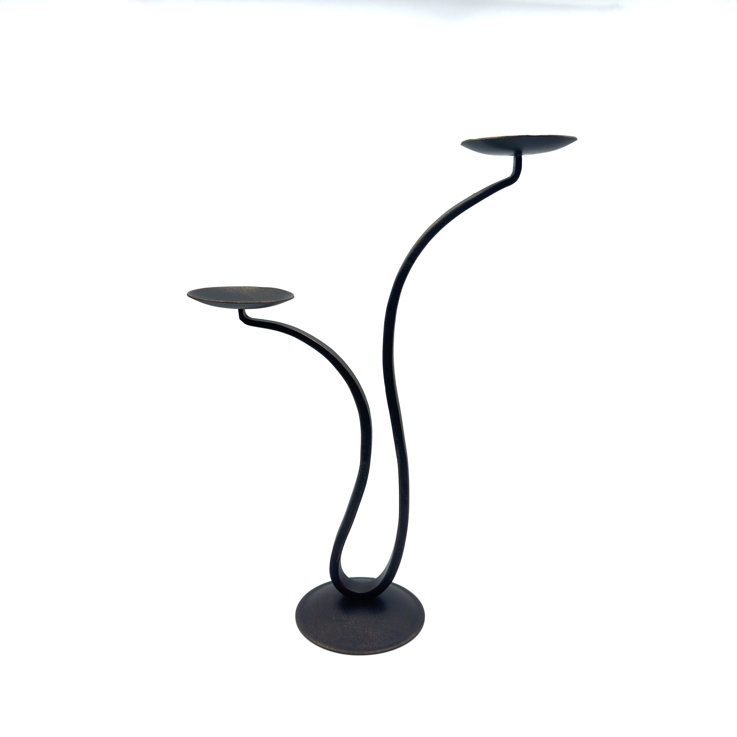 Discover the perfect intersection of raw power and elegant fluidity with this exceptional hand forged iron candelabra. This striking 2 light piece is not merely a candle holder it is a sculptural statement of artisan mastery designed to serve as the sophisticated focal point of any refined space.