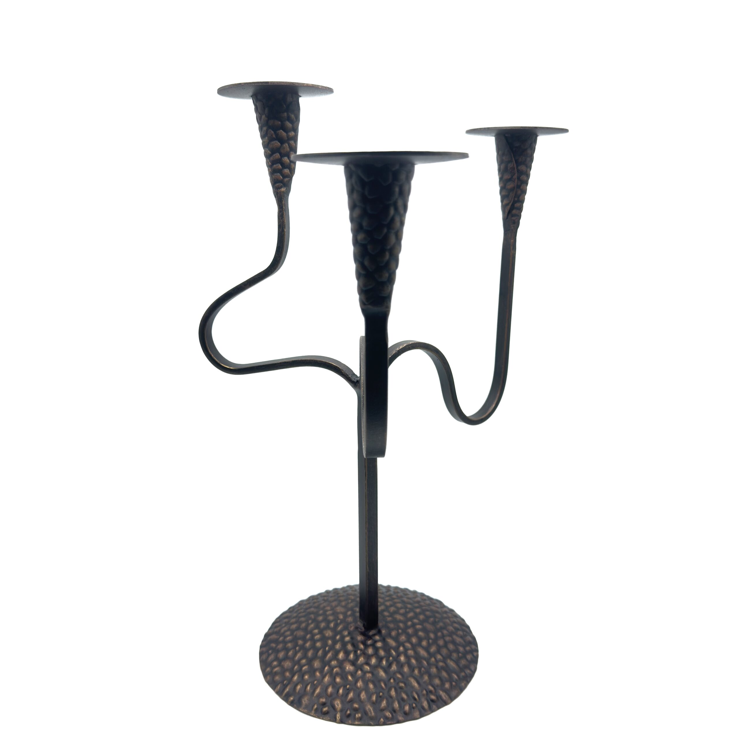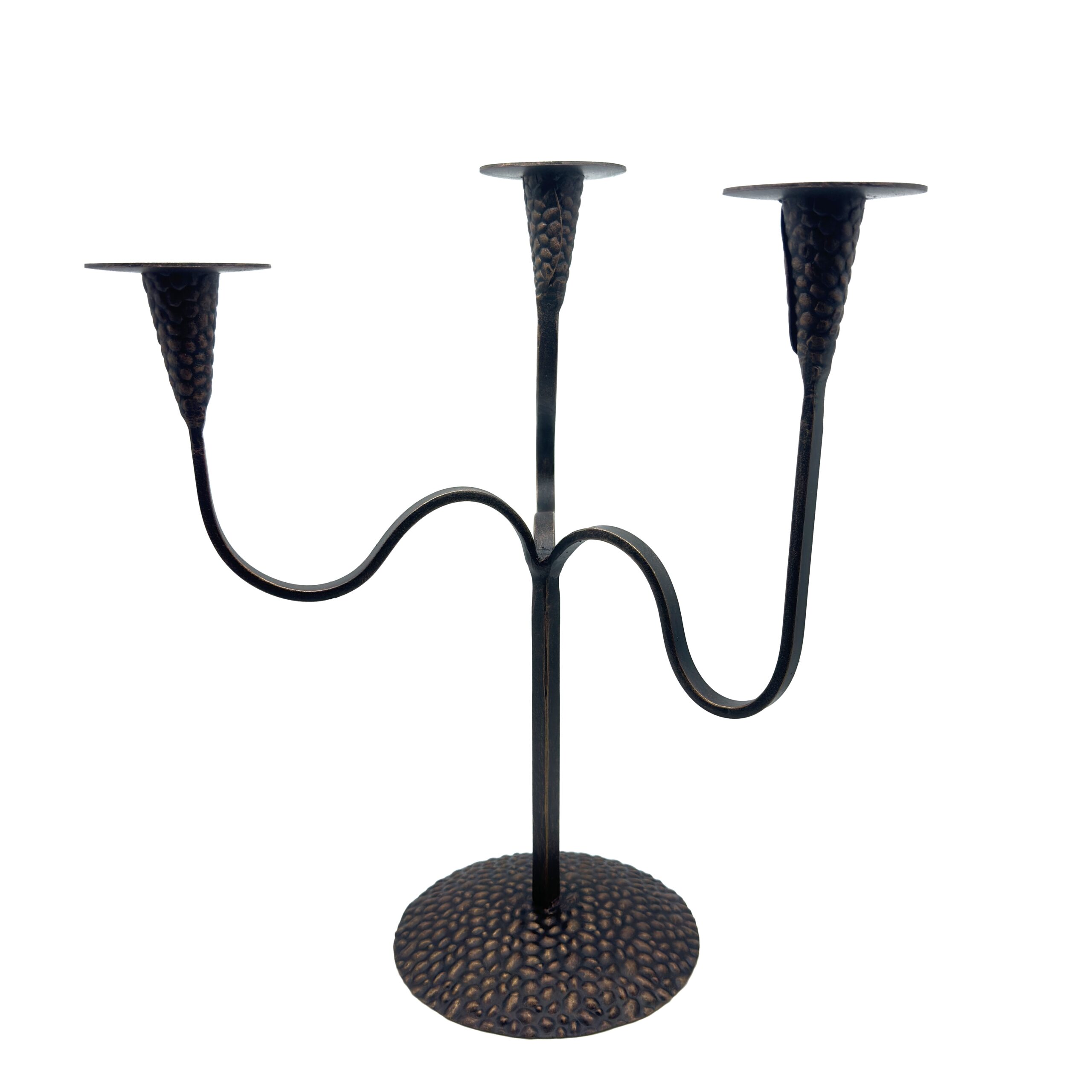 Hand Forged Wrought Iron 3 Light Candelabra (Antique Patina) Textured Cup Candle Holder