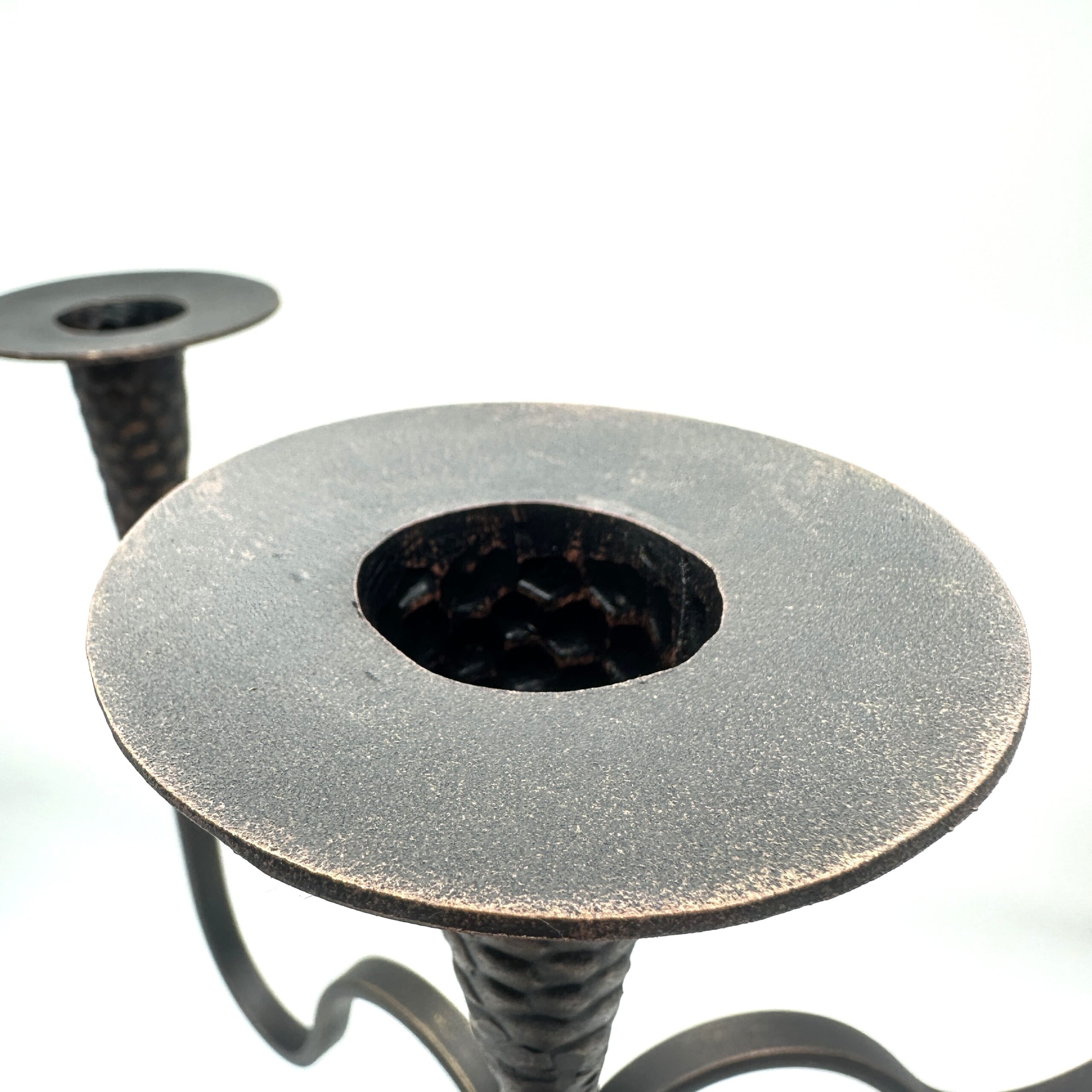 ⚠️ Uniqueness Guarantee: Because each iron candelabra is heated shaped and textured entirely by hand the exact relief patterns sweeping curves and patina highlights will always vary slightly. Your piece will be a truly unique original work of functional art.