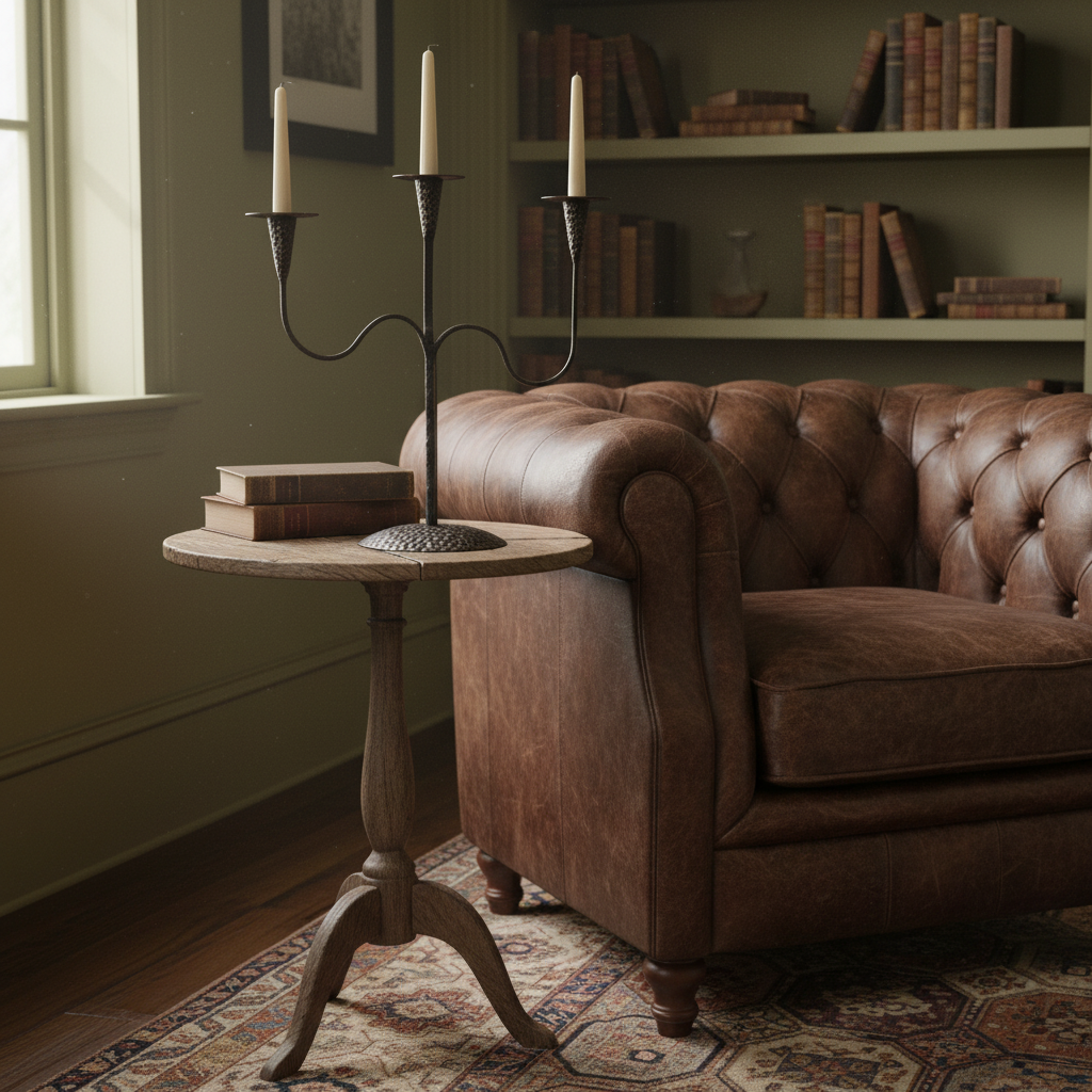 Discover a captivating blend of deep organic textures and elegant geometry with this exceptional hand forged iron candelabra. This striking 3 light piece is far more than a candle holder it is a masterclass in traditional blacksmithing designed to serve as the sophisticated focal point of any refined interior.