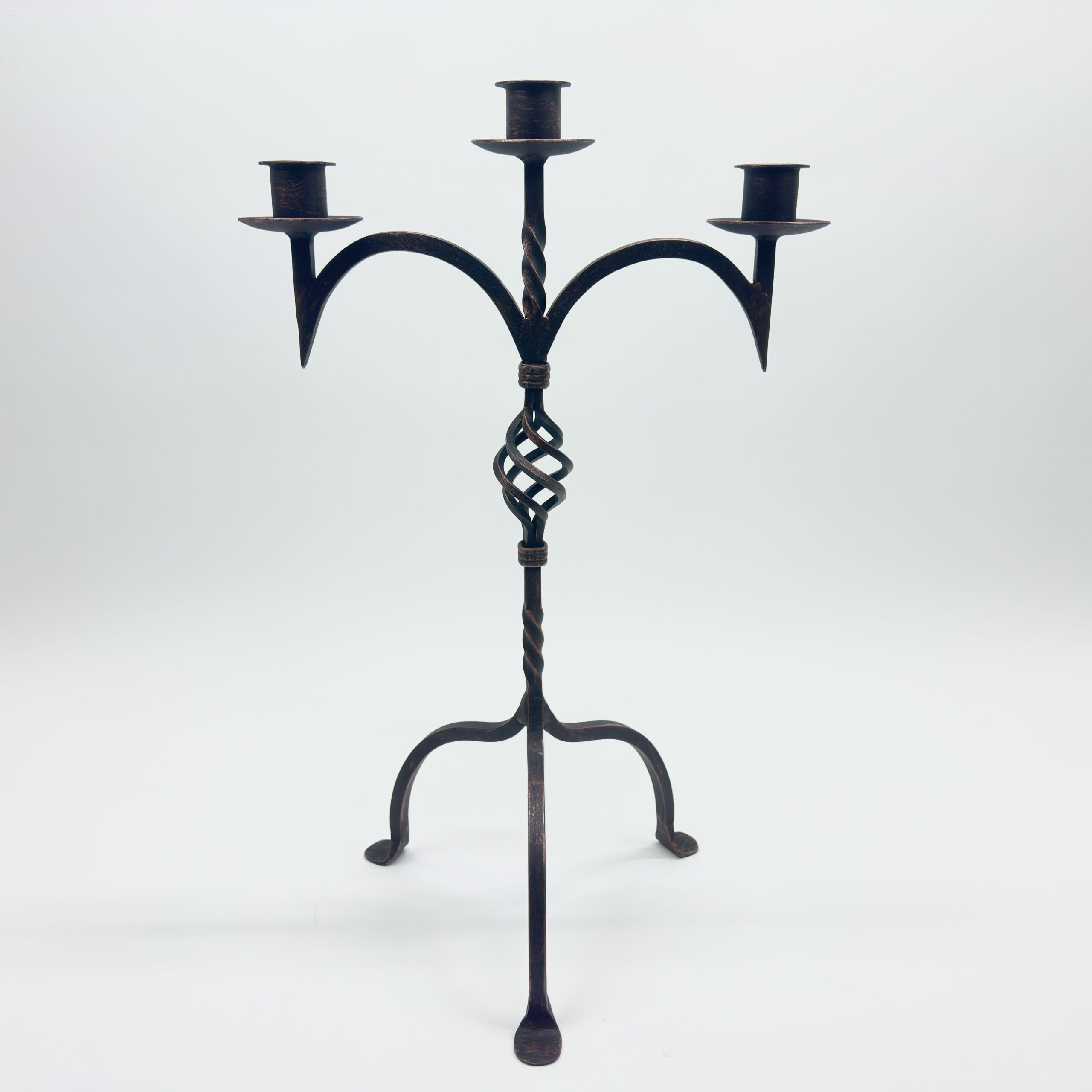 Make a bold statement on your dining table or console with this 24.5-inch (62cm) hand forged candelabra. Features a durable electrostatic bronze finish and a stable 15.7 inch (40cm) width. 100% Handmade.