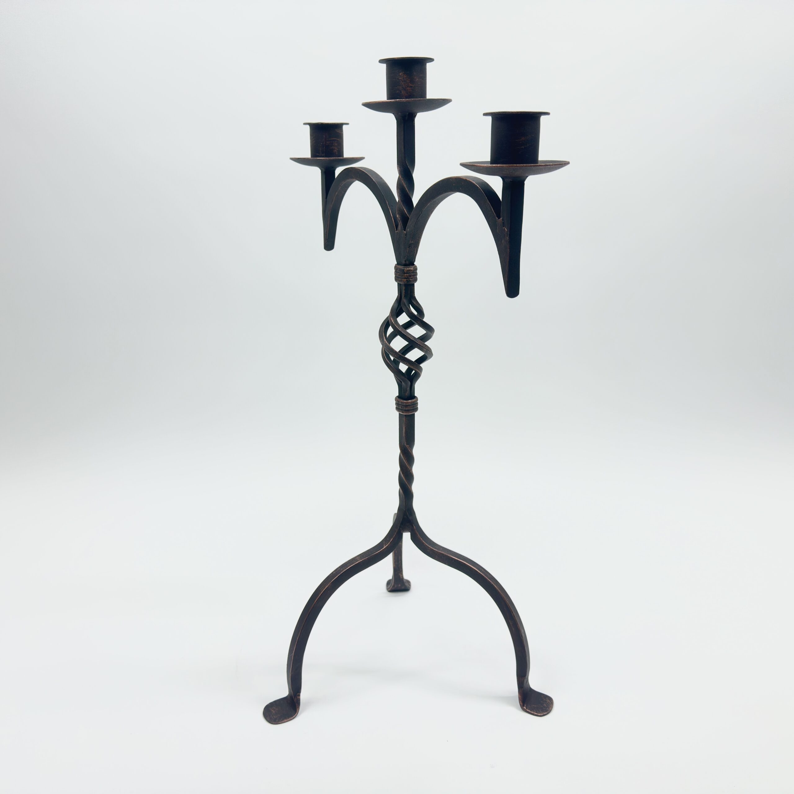 Hand Forged Wrought Iron 3 Light Candelabra (Antique Patina) Tall Floor or Table Candle Holder