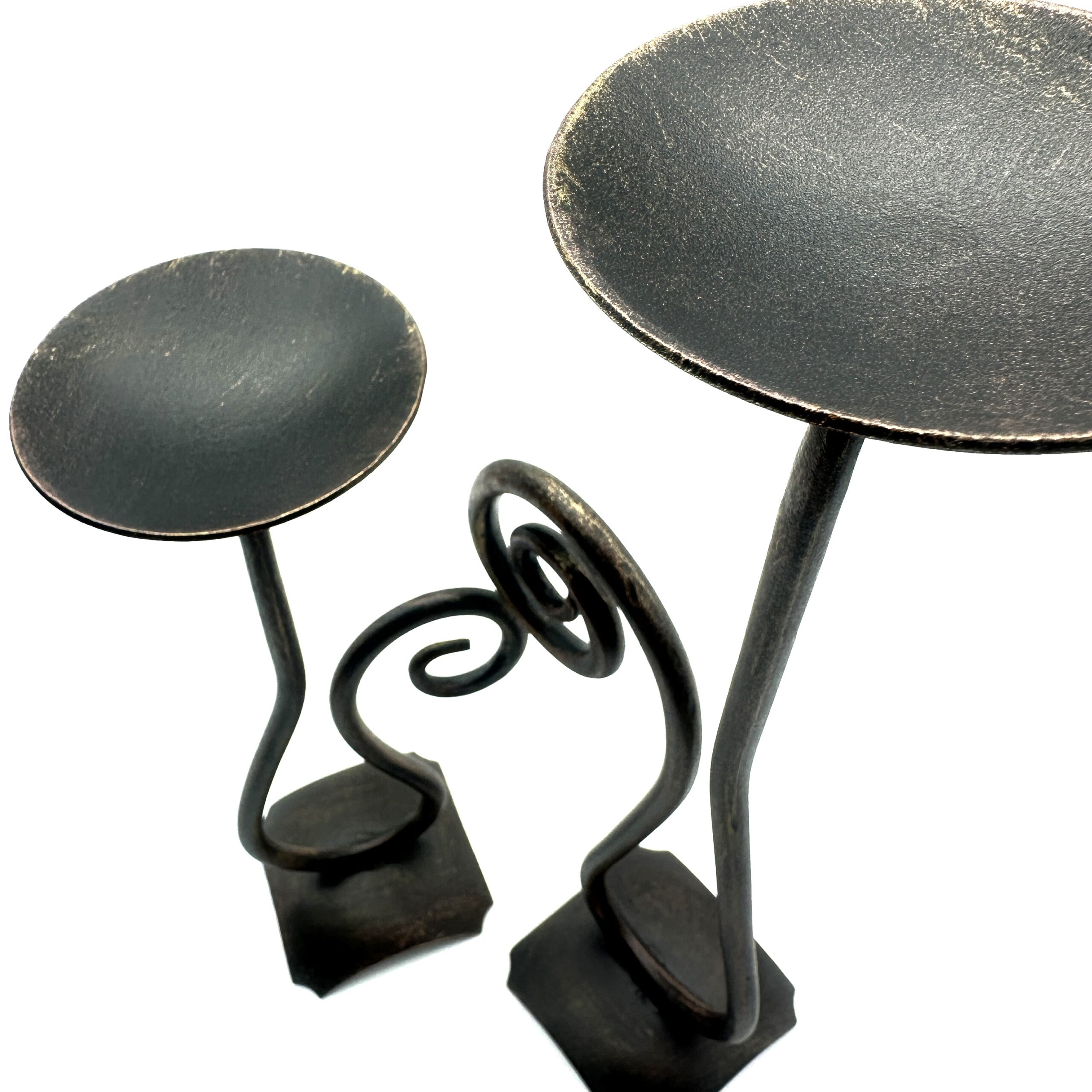 Hand Forged Iron Candle Holder Set of 2 Antique Patina Finish Single Plate Spiral Scroll Centerpieces