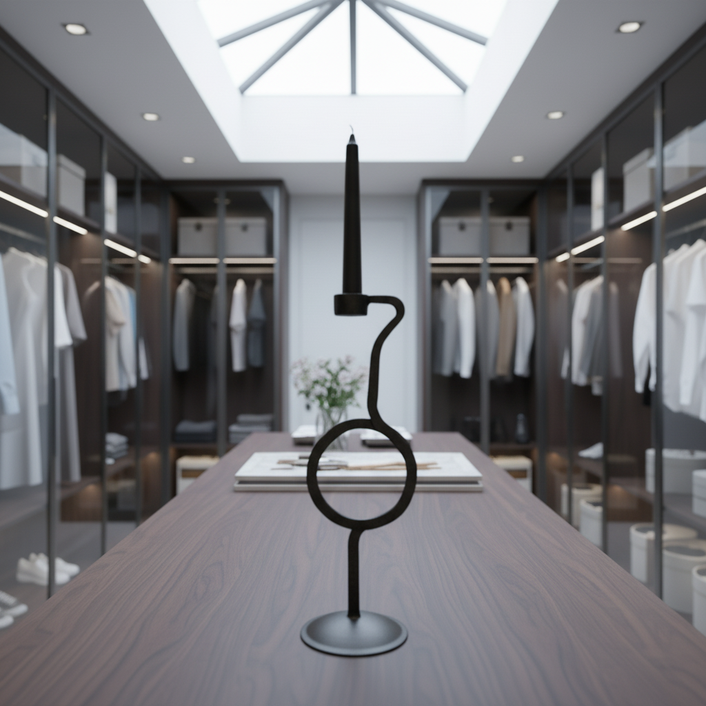 Curated Statement Piece Standing 13 inches tall with a highly compact footprint this candlestick commands attention in unexpected spaces. It is an excellent choice for a dramatic display on a stone staircase pedestal an elegant addition to a luxury walk in wardrobe island or a striking atmospheric accent for an enclosed patio table.