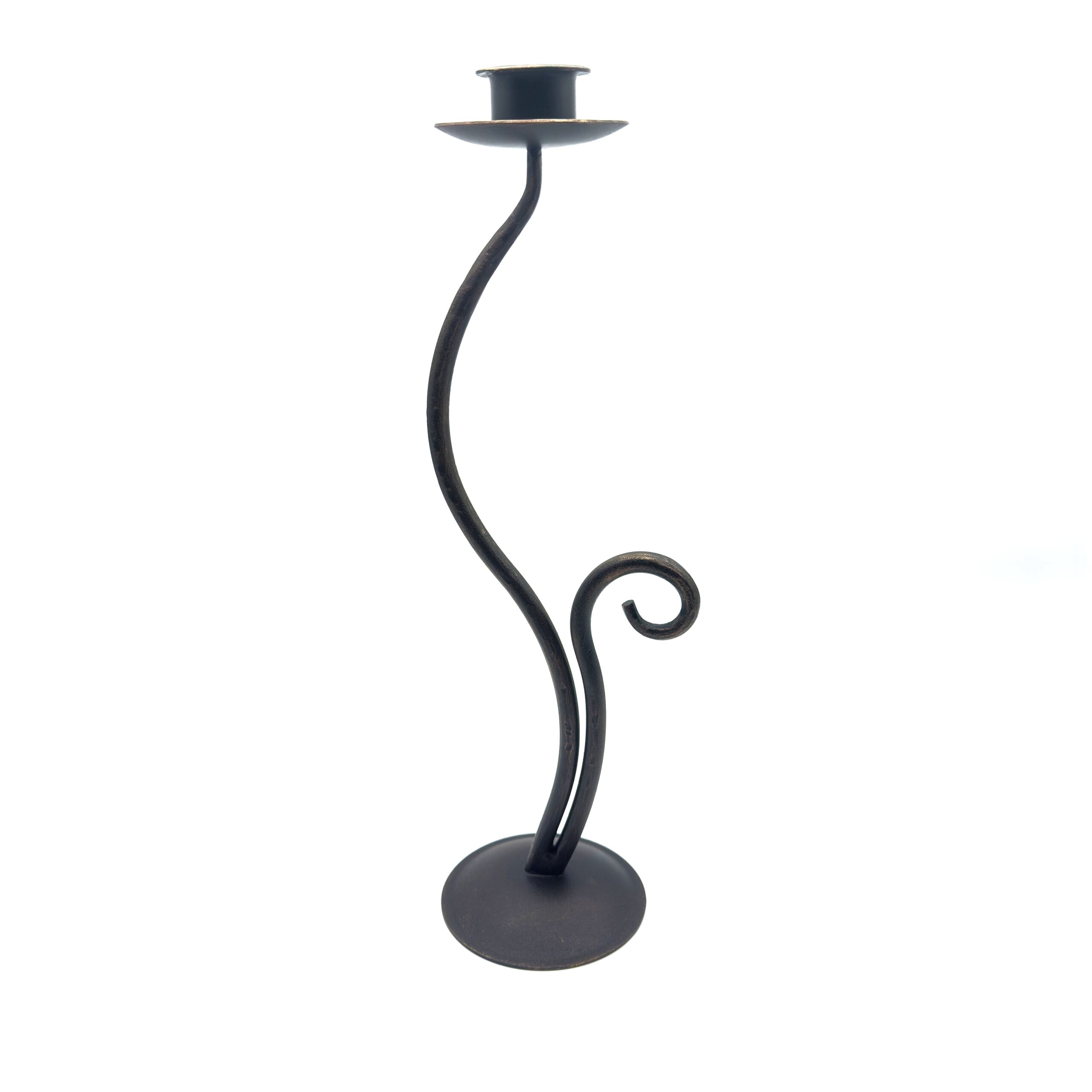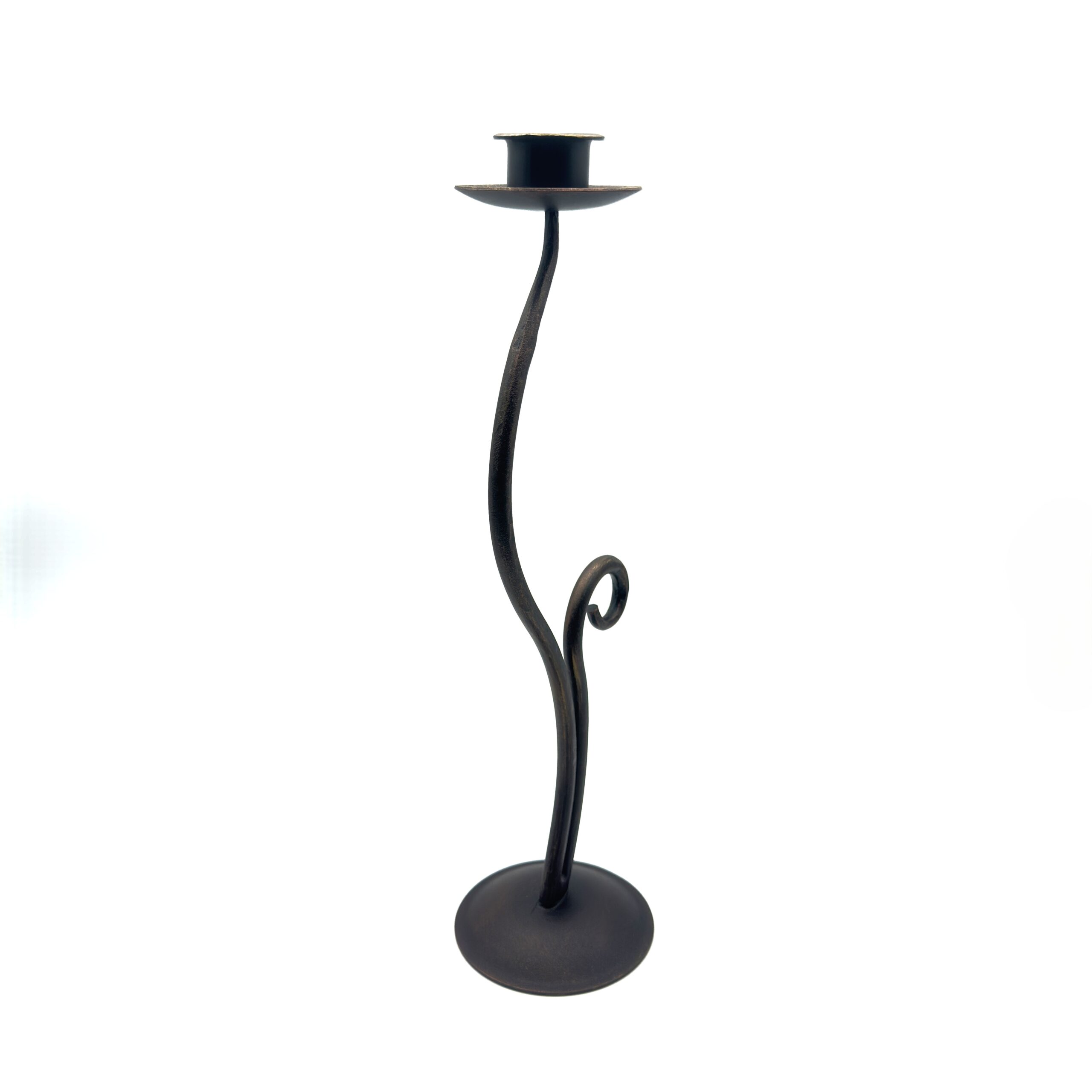 Hand Forged Iron Candlestick 15″ (39cm) Antique Patina Finish Single Light Sweeping Scroll Centerpiece