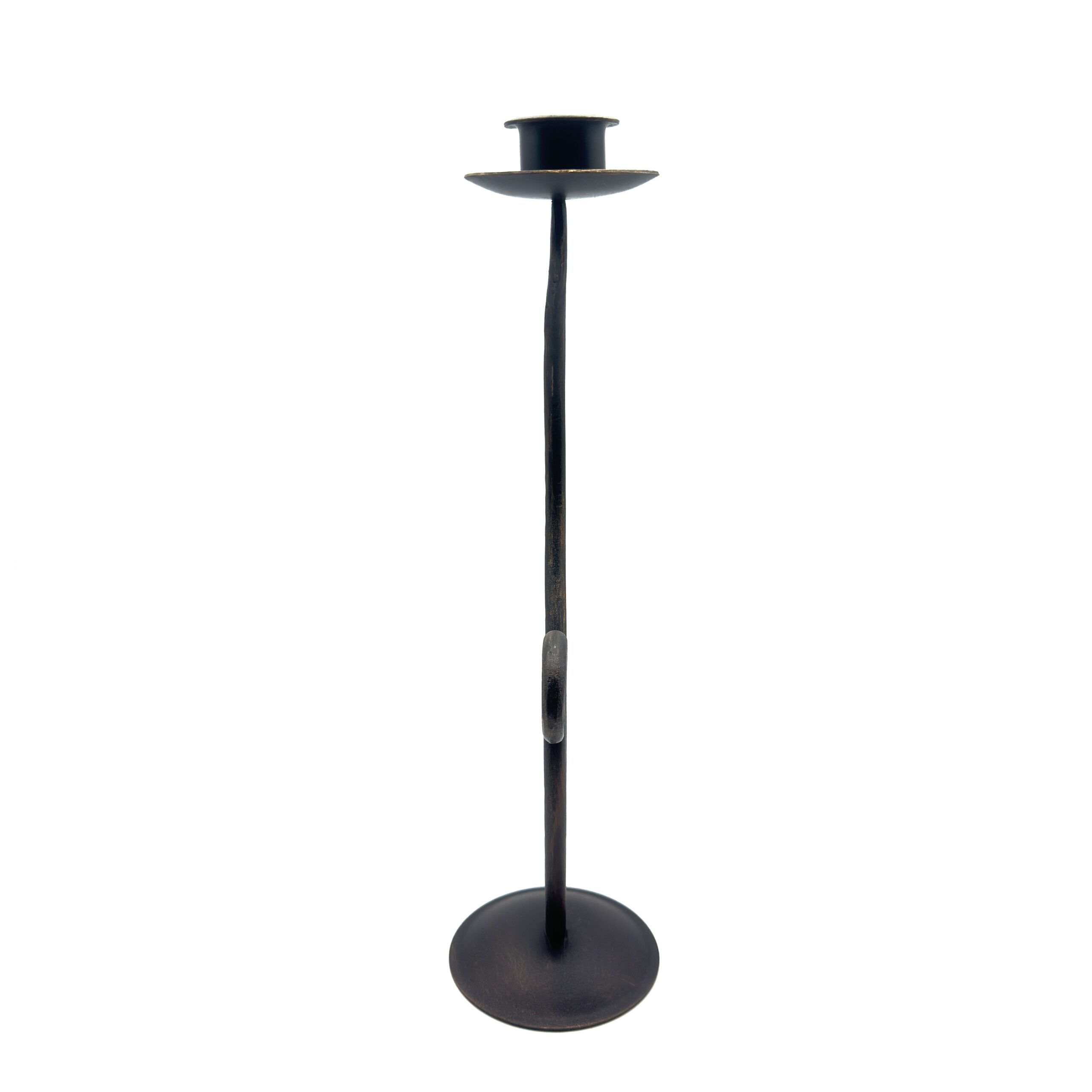 Hand Forged Iron Candle Holder 11″ (28cm) Antique Patina Finish Single Light Sculptural Centerpiece