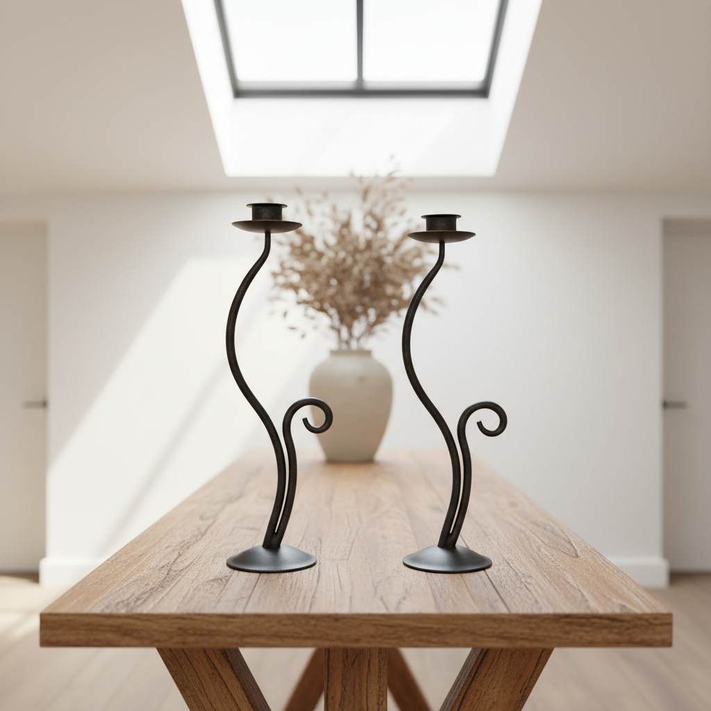 ⚠️ Uniqueness Guarantee: Because each iron candlestick is heated shaped and finished entirely by hand the exact textures sweeping curves and patina highlights will always vary slightly. Your piece will be a truly unique original work of functional art.