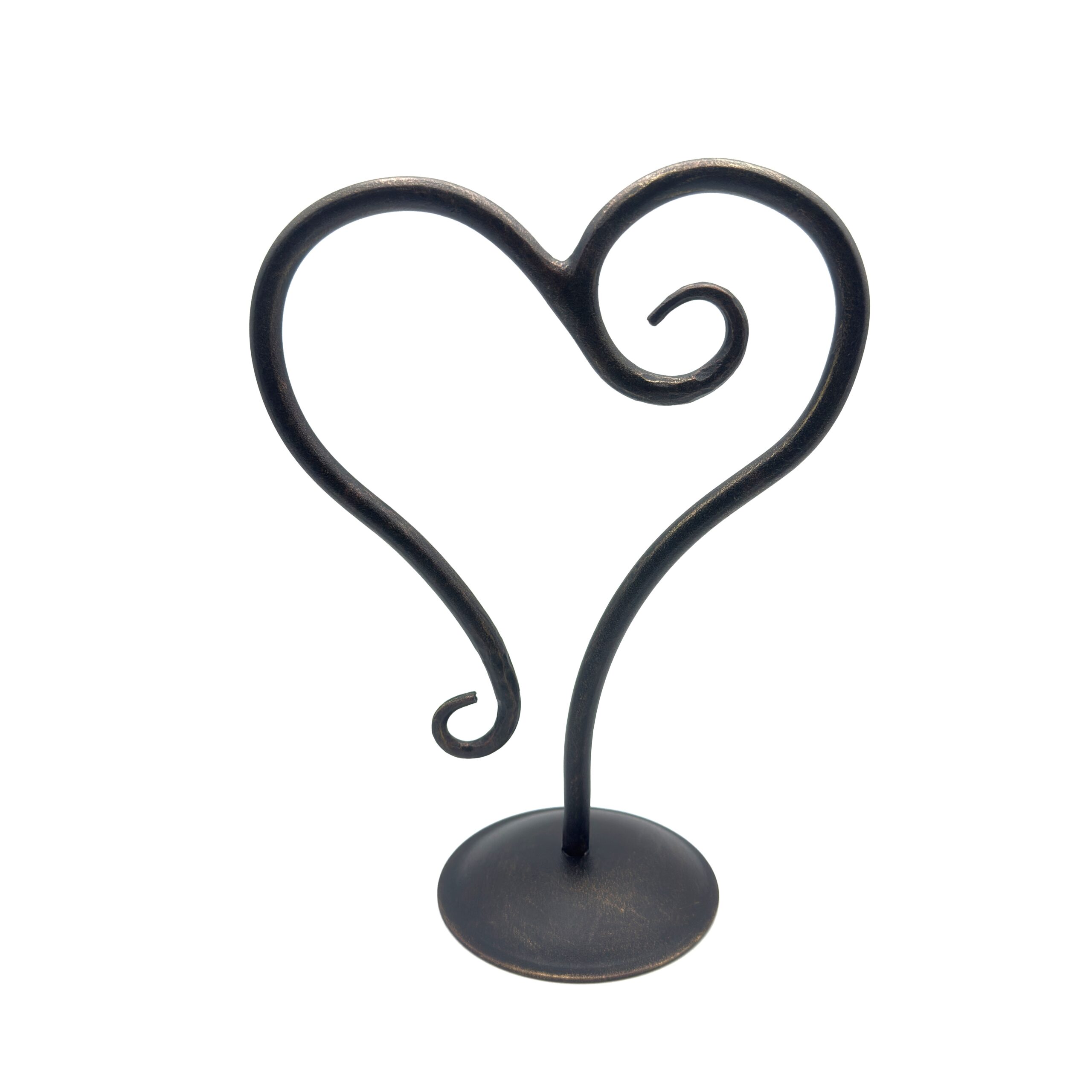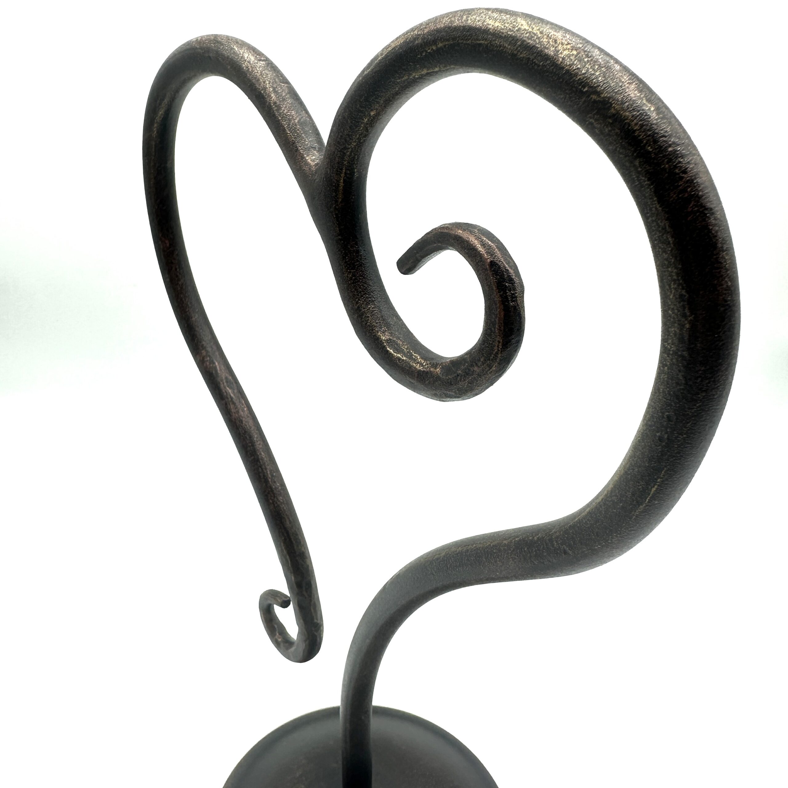 Hand Forged Iron Sculptural Decorative Object 10″ (26cm) Antique Patina Finish Scrolled Heart Motif