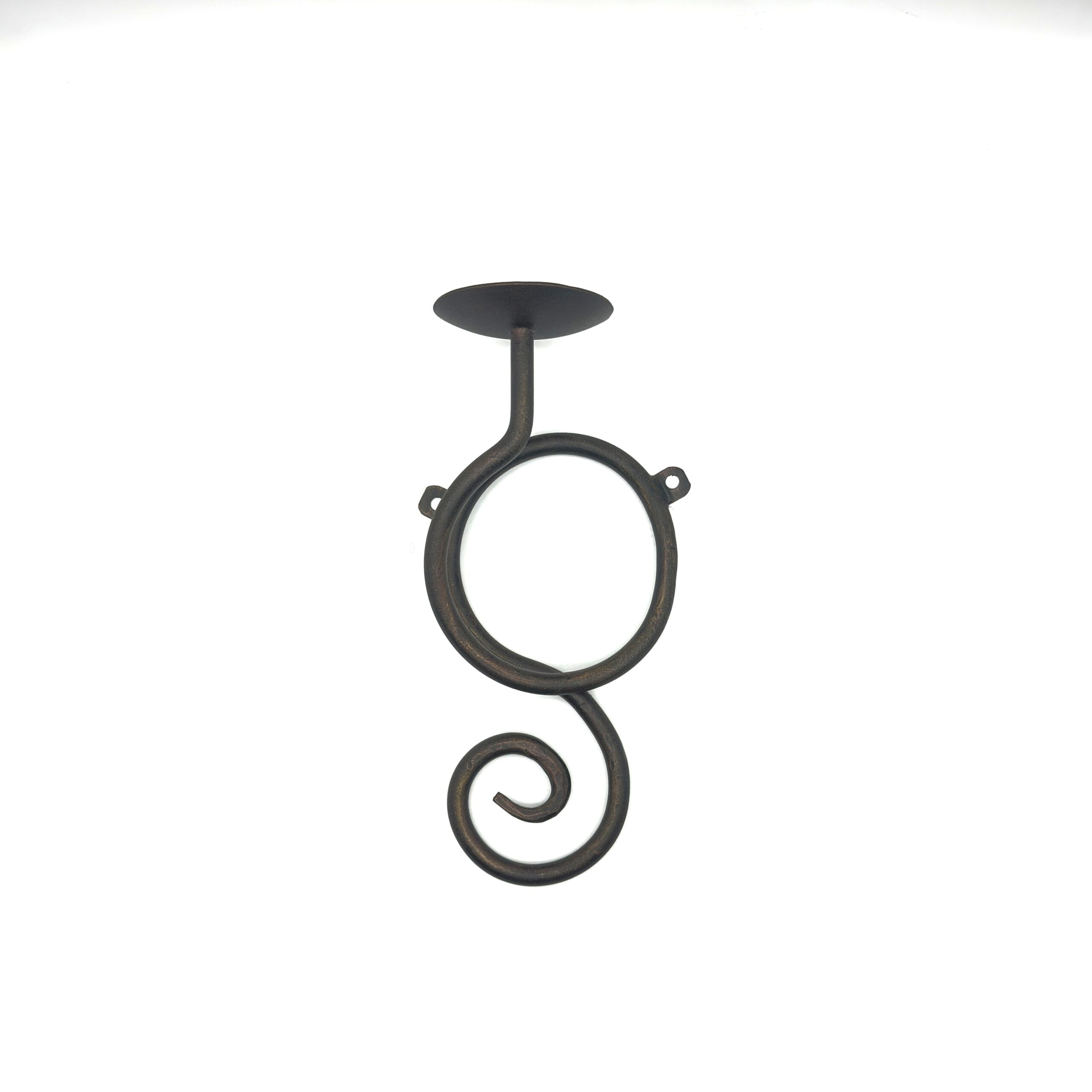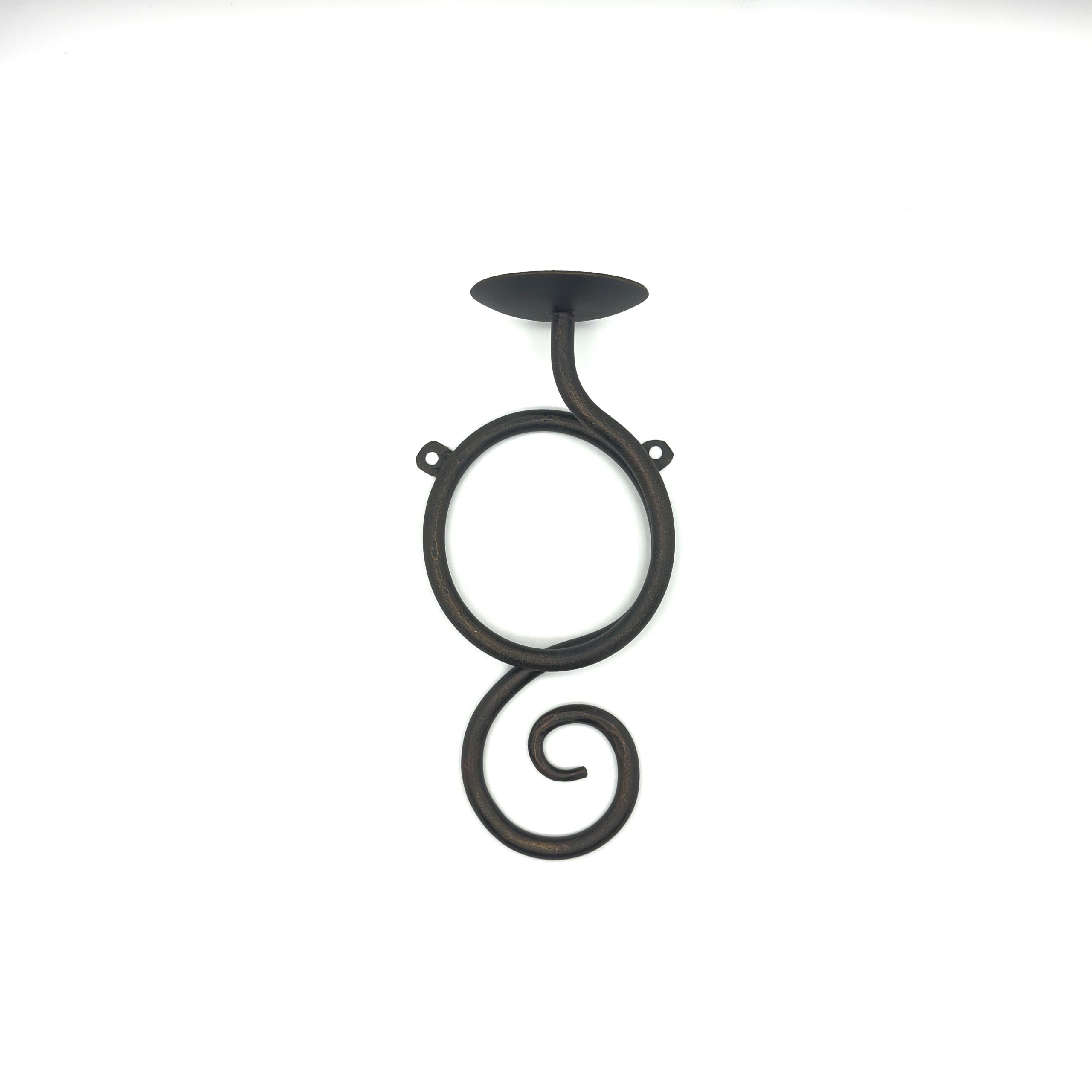 Classic Scrolls and Hammered Textures Artistic ingenuity is beautifully showcased in the sleek silhouette of each individual piece. Rising from a sturdy flush mounted wall plate the solid iron stem forms a graceful upward curve supporting a robust single taper cup and a wide protective drip pan. A delicate downward spiral scroll completes the base adding a touch of classic Old World romance. The entire structure is deeply hammered creating a rich relief texture that catches the ambient light beautifully.