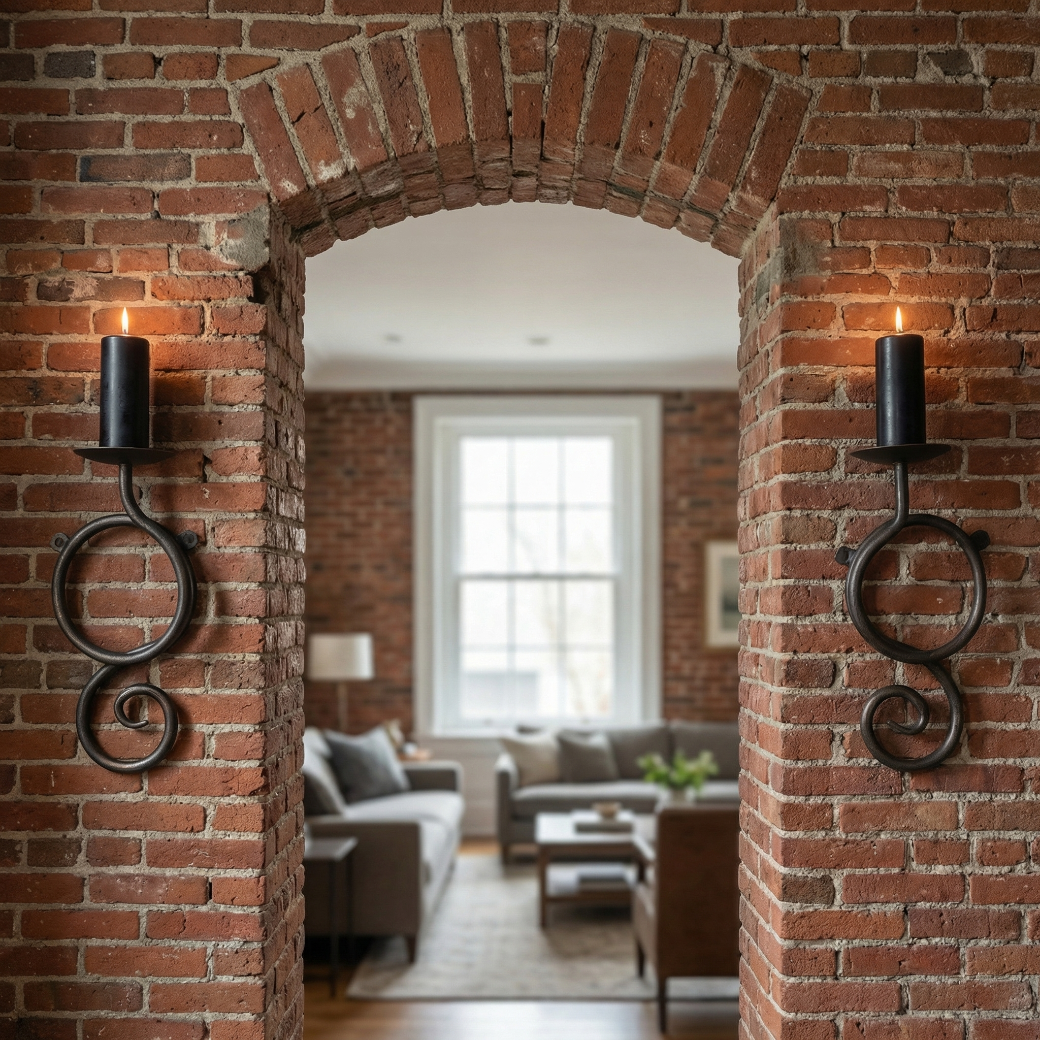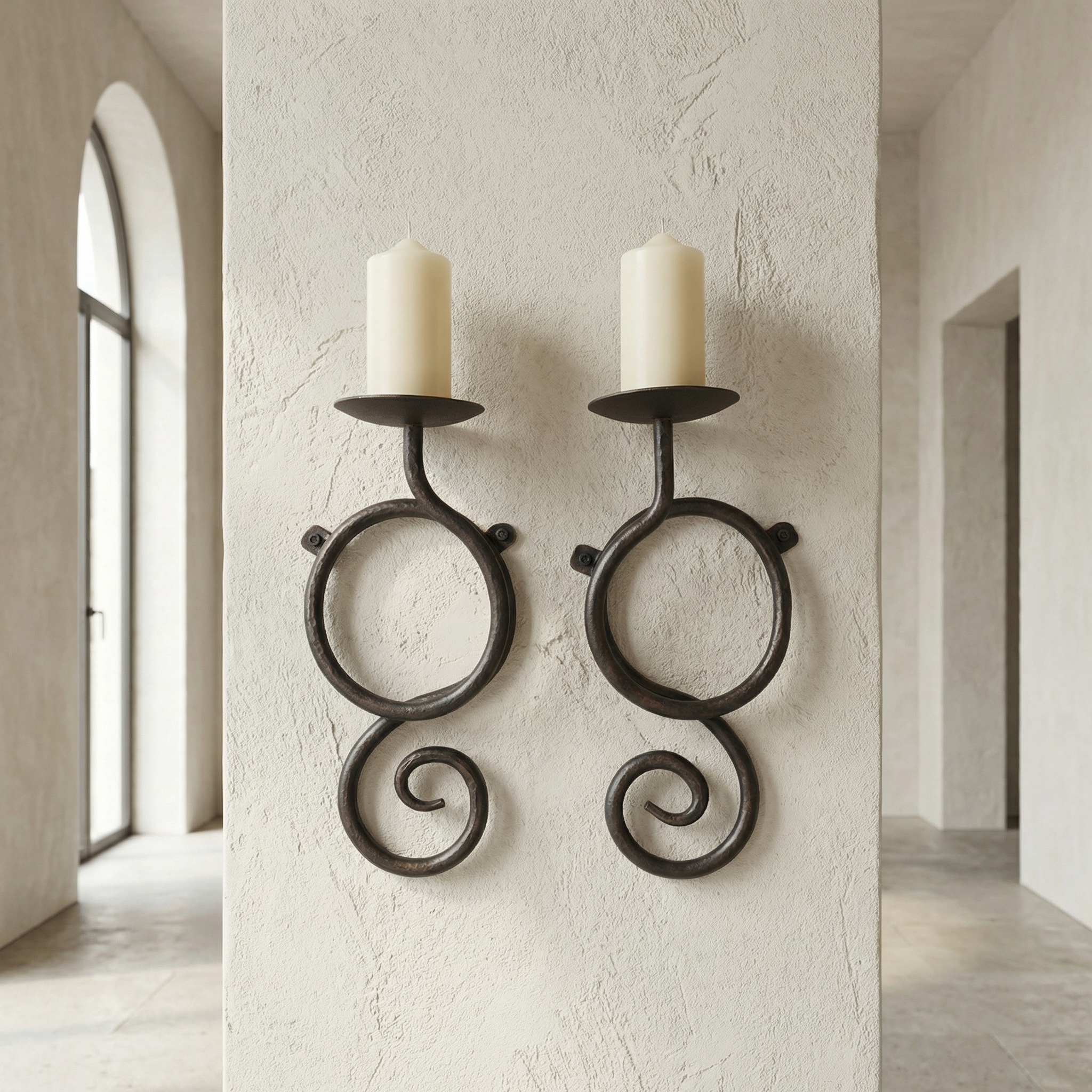 ⚠️ Uniqueness Guarantee: Because each iron wall sconce is heated shaped and textured entirely by hand the exact hammer marks scroll curves and patina highlights will always vary slightly. Your set will be a truly unique original work of functional art.