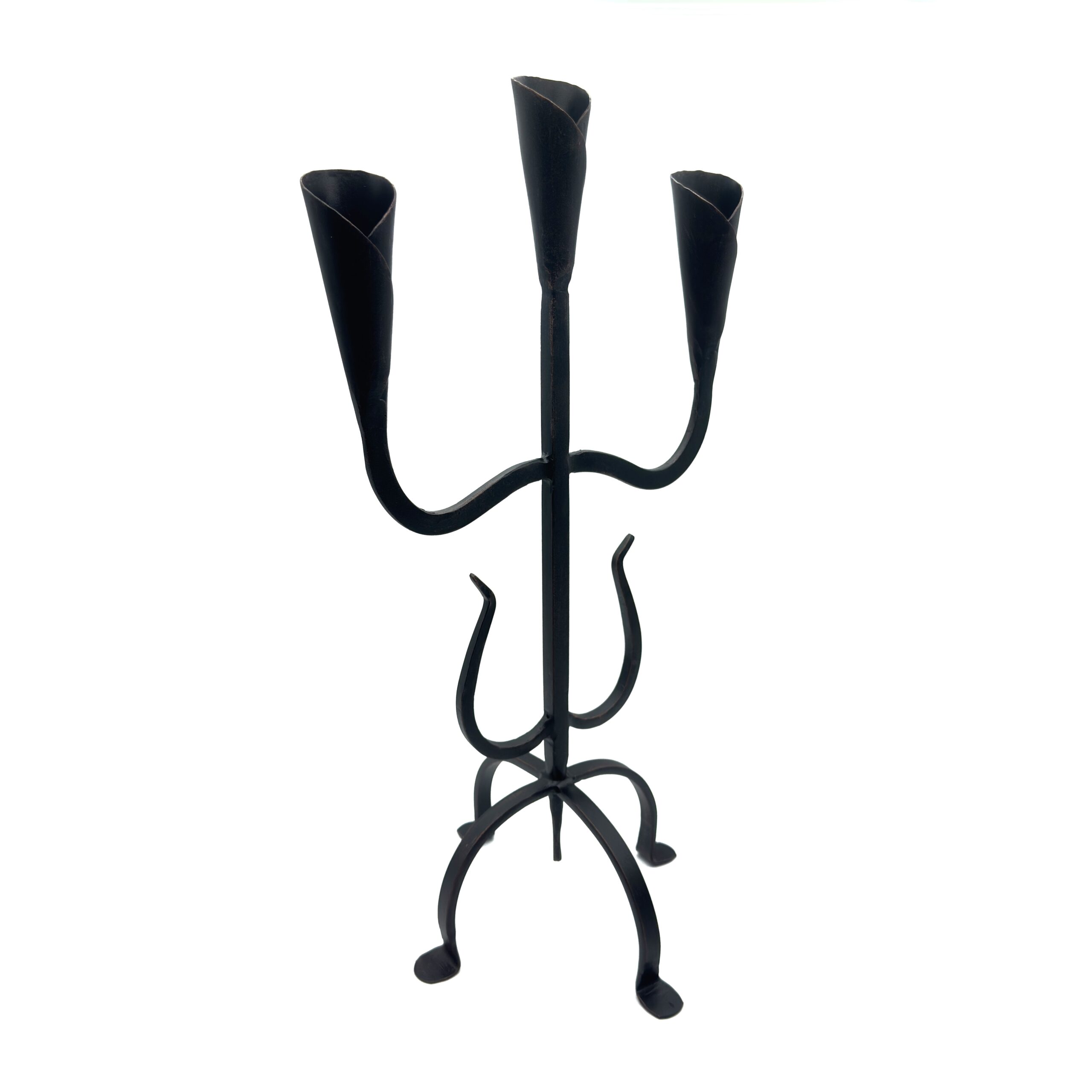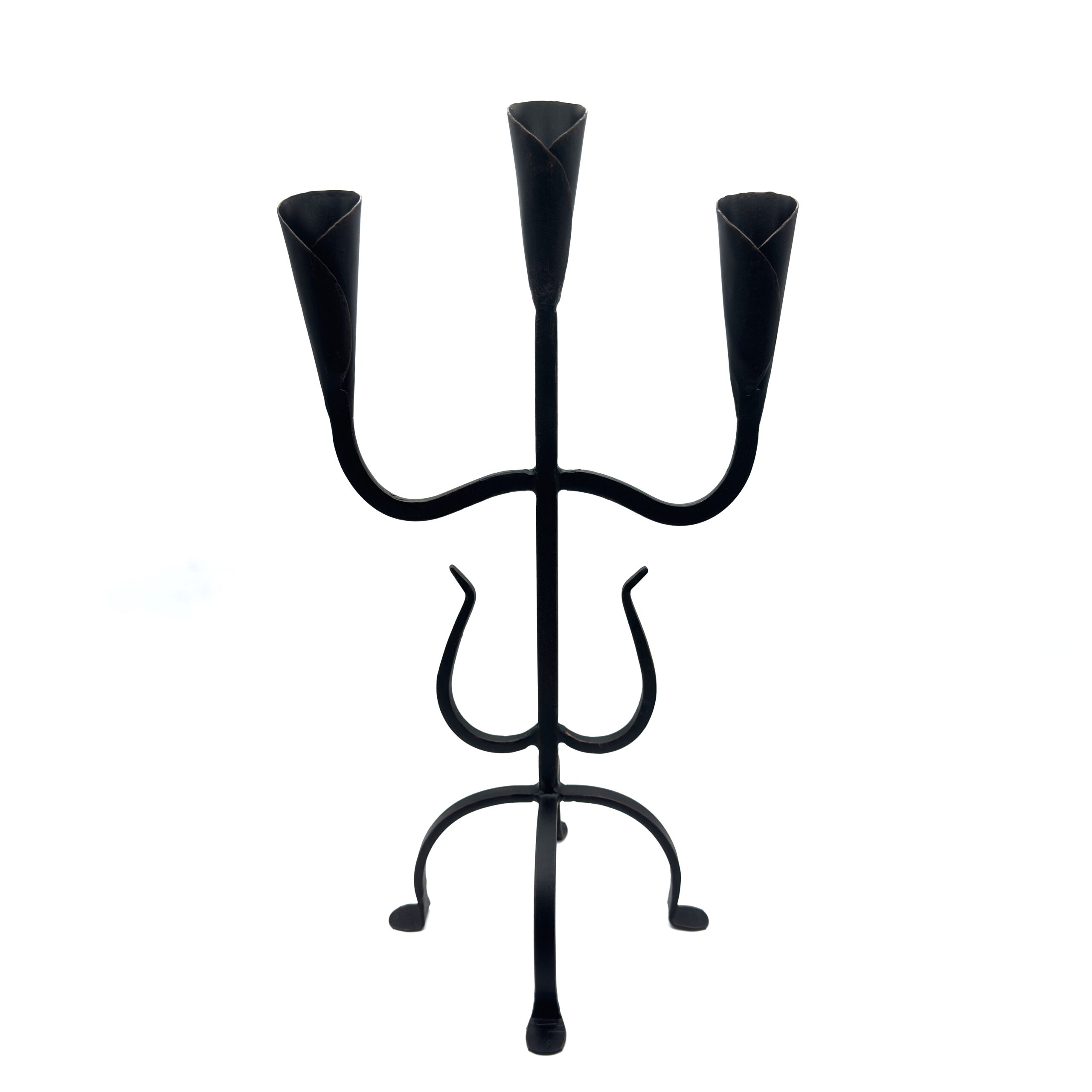 Hand Forged Wrought Iron 3 Light Candelabra (Antique Patina) Solid Flat Base Candle Holder