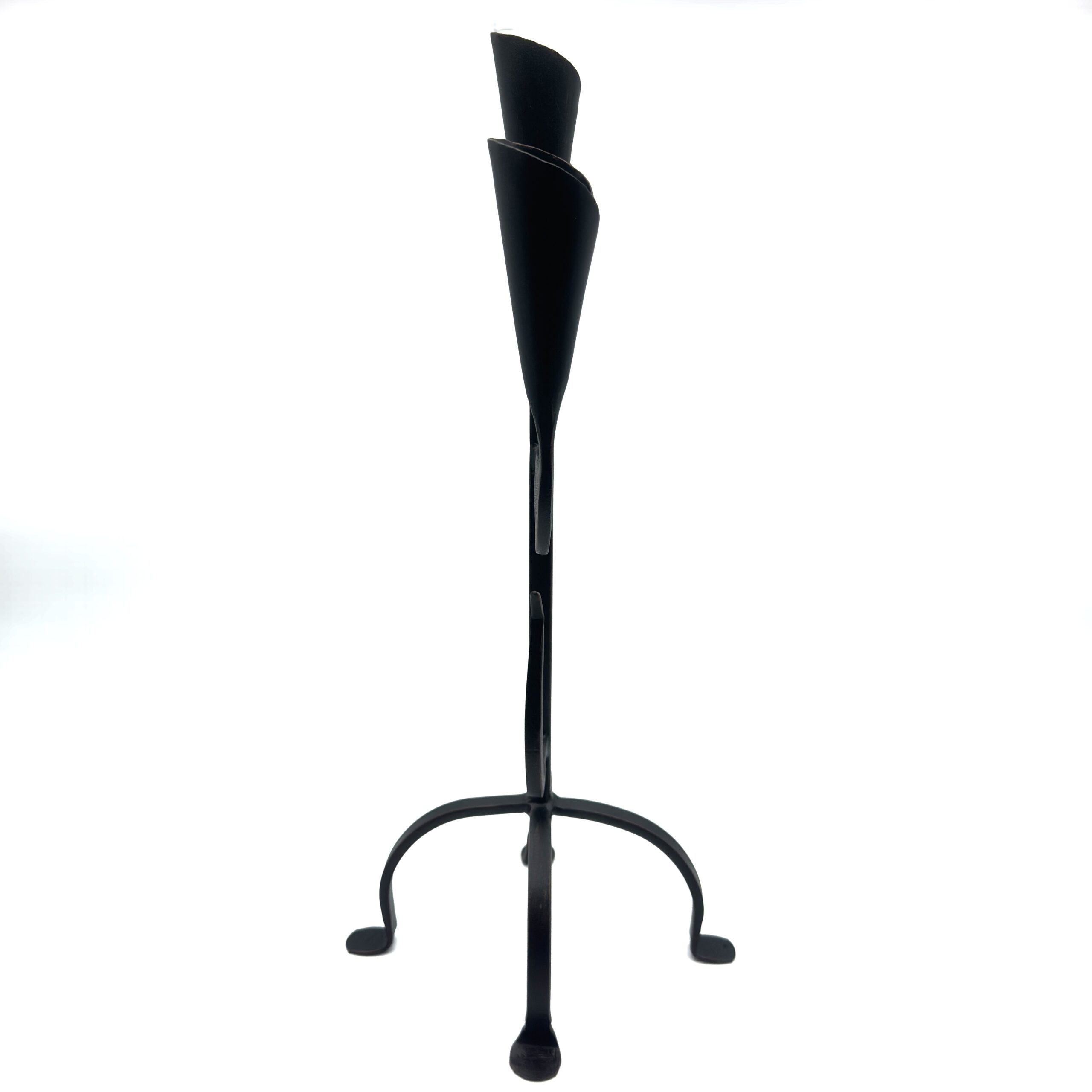 Masterful Forged Details Every inch of this piece showcases exceptional artisan skill. The substantial base is meticulously constructed from a single continuous piece of thick flat iron providing both incredible stability and clean visual appeal. From this solid foundation a strong central pillar rises joined by two side stems. Each of the three candle cups includes a robust drip pan and is heavily hammered by hand creating a rich organic texture that resembles ancient artifacts.