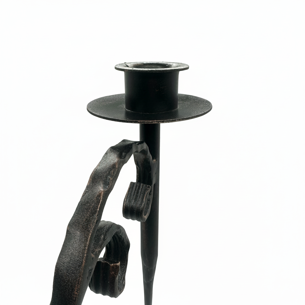 Hand Forged Iron Candle Holder 11″ (28cm) Antique Patina Finish Single Light Sculptural Centerpiece