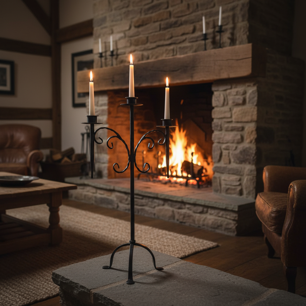 ⚠️ Uniqueness Guarantee: Because every single hammer strike and curve is shaped by hand the exact textures and antique highlights will always vary slightly. Your tall iron candelabra will be a truly one of a kind original.