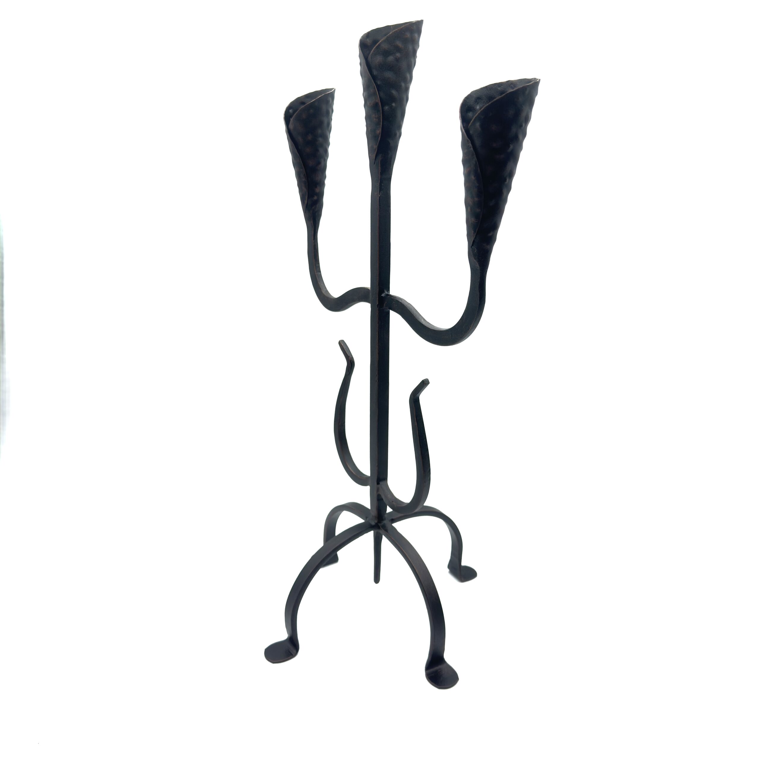Hand Forged Wrought Iron 3 Light Candelabra (Antique Patina) Textured Cup Candle Holder