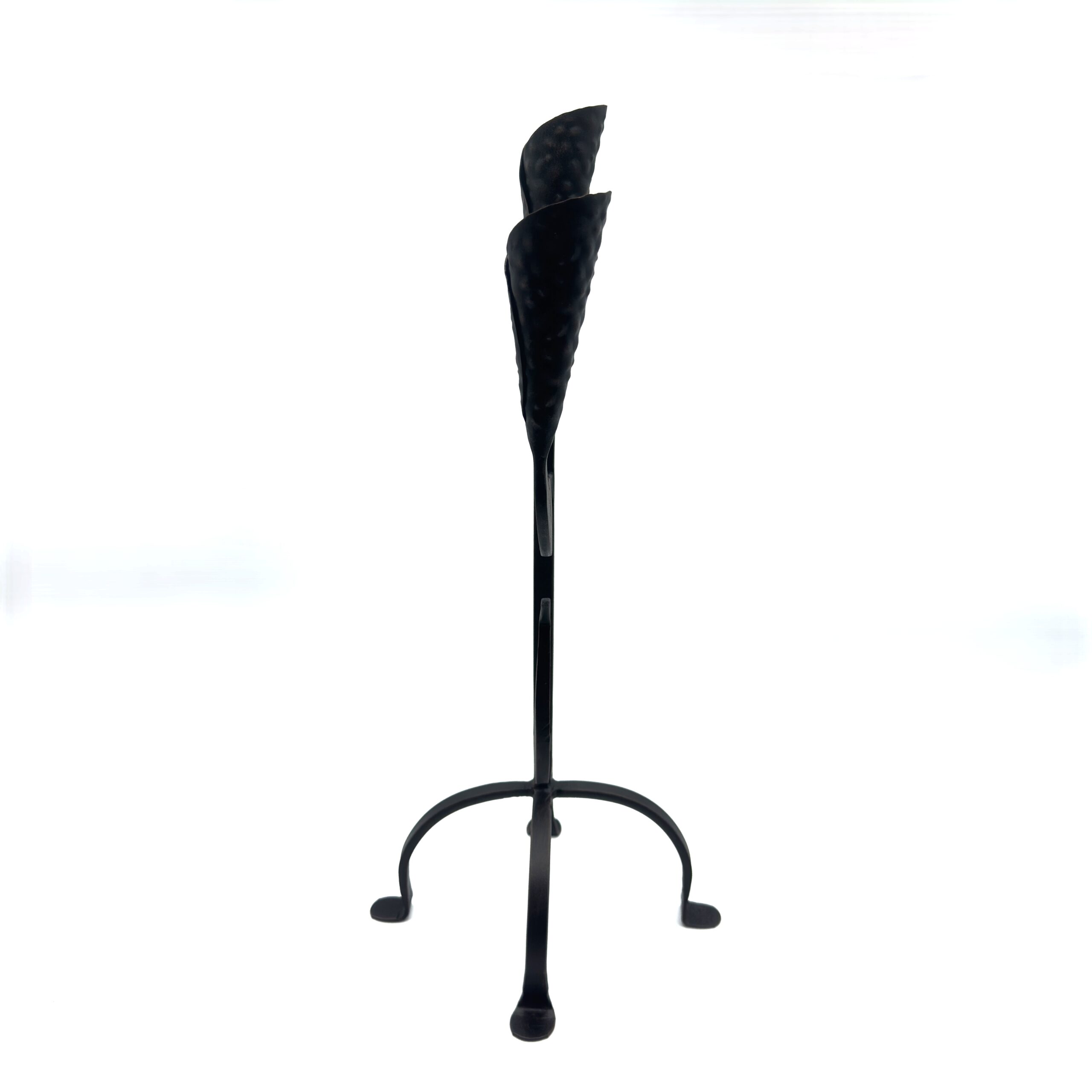 Hand Forged Iron Candle Holder 11″ (28cm) Antique Patina Finish Single Light Sculptural Centerpiece