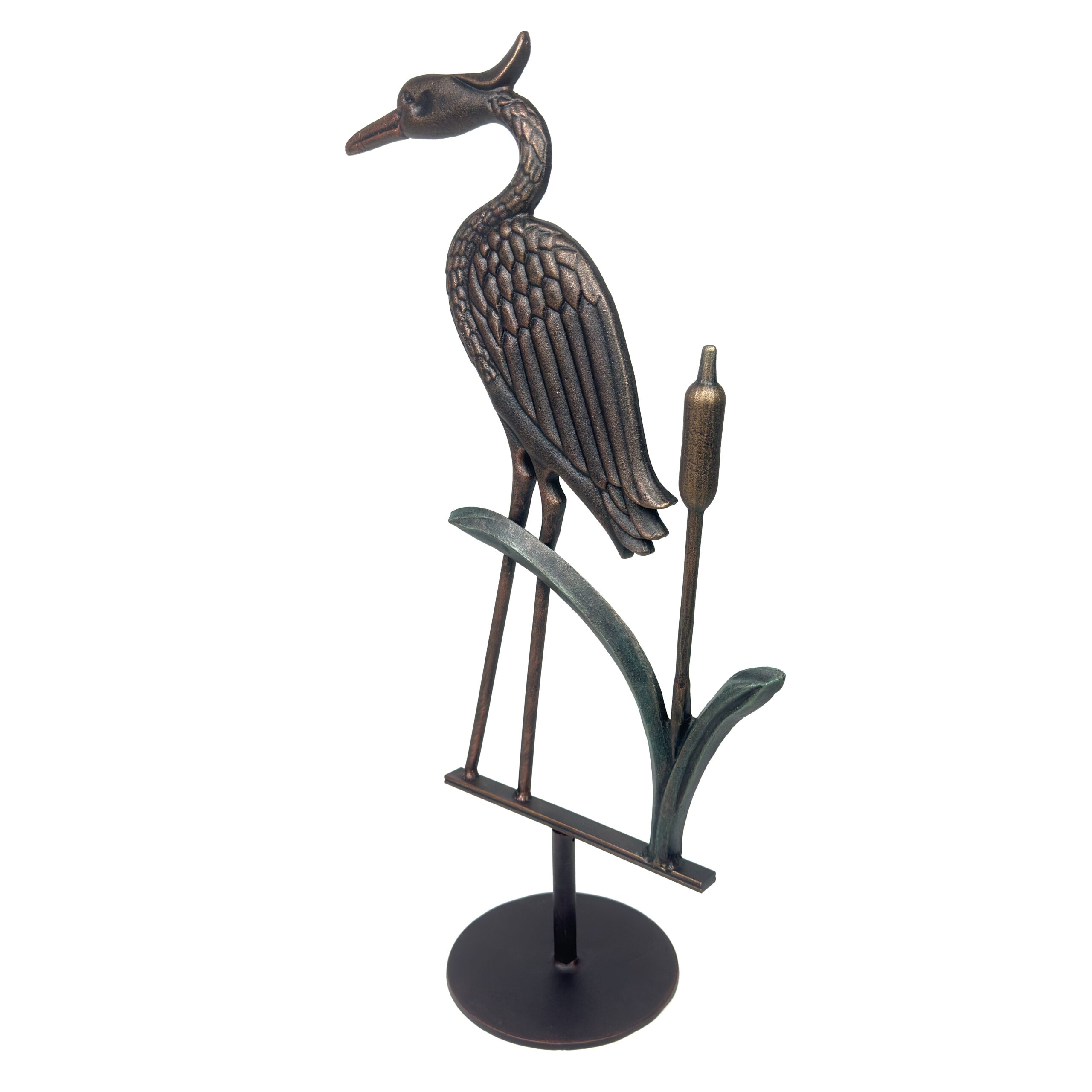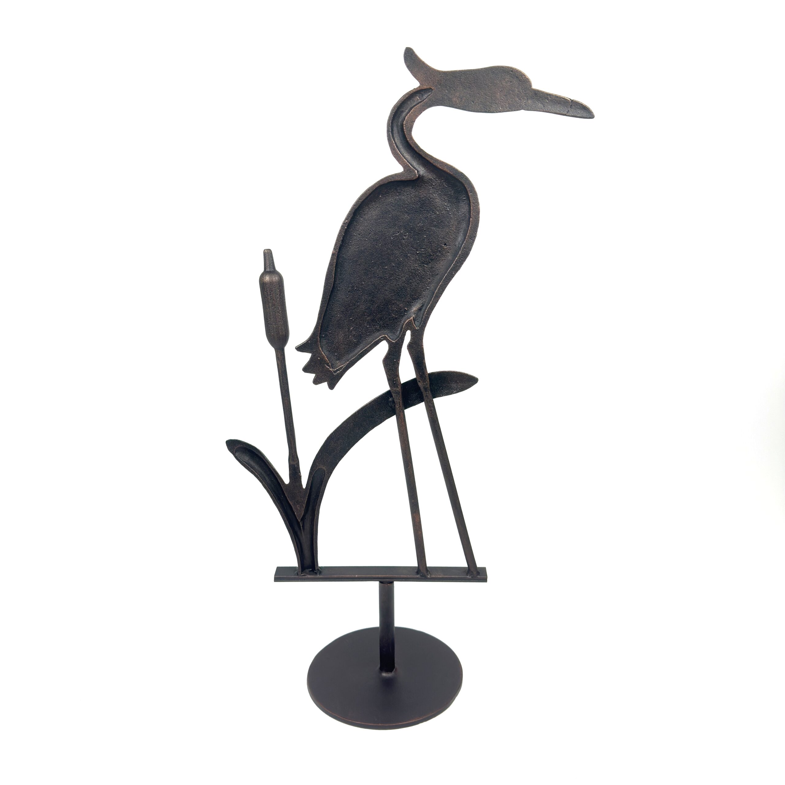 Hand Forged Wrought Iron Heron Sculpture 26″ (66cm) Antique Patina Reed & Cattail Accents Decor