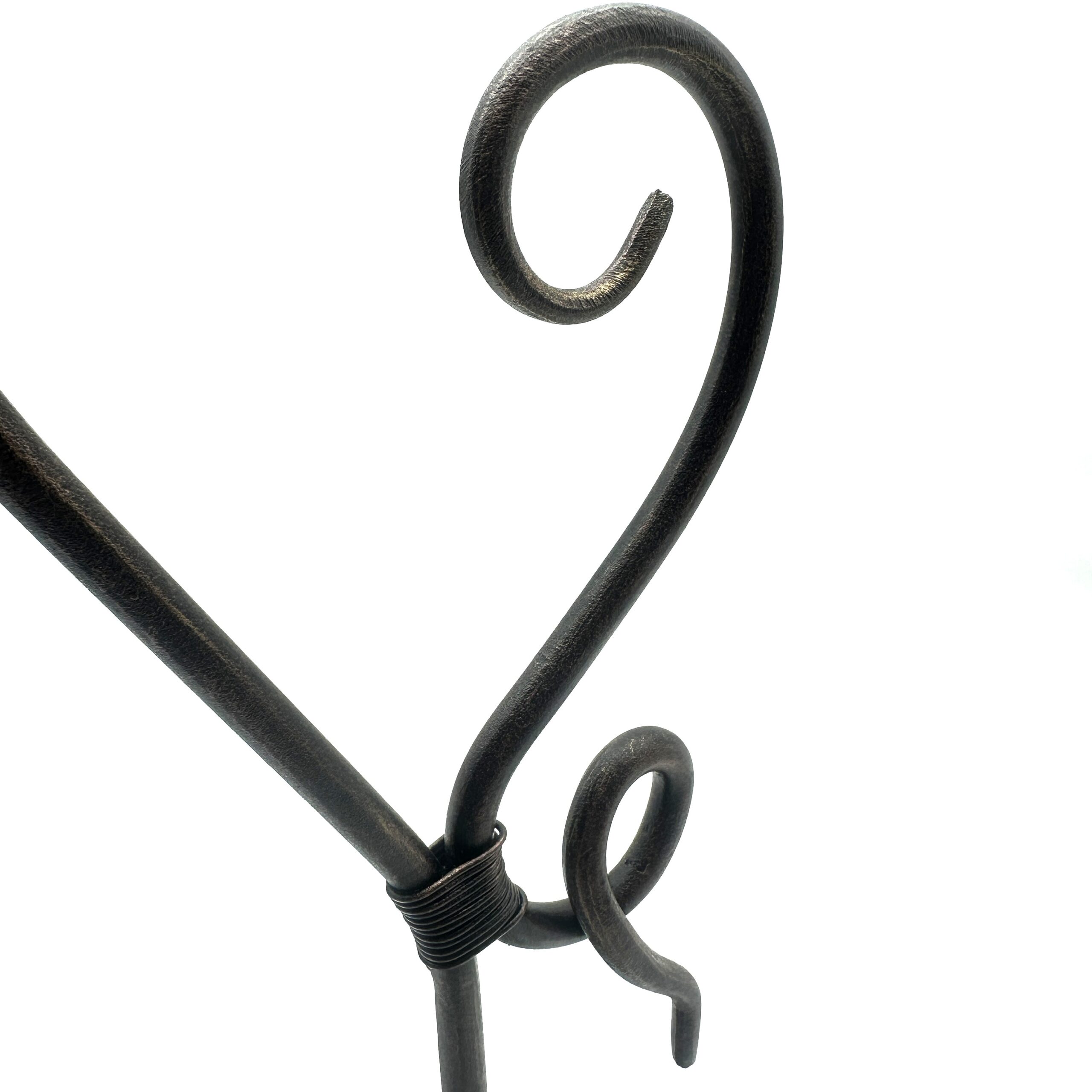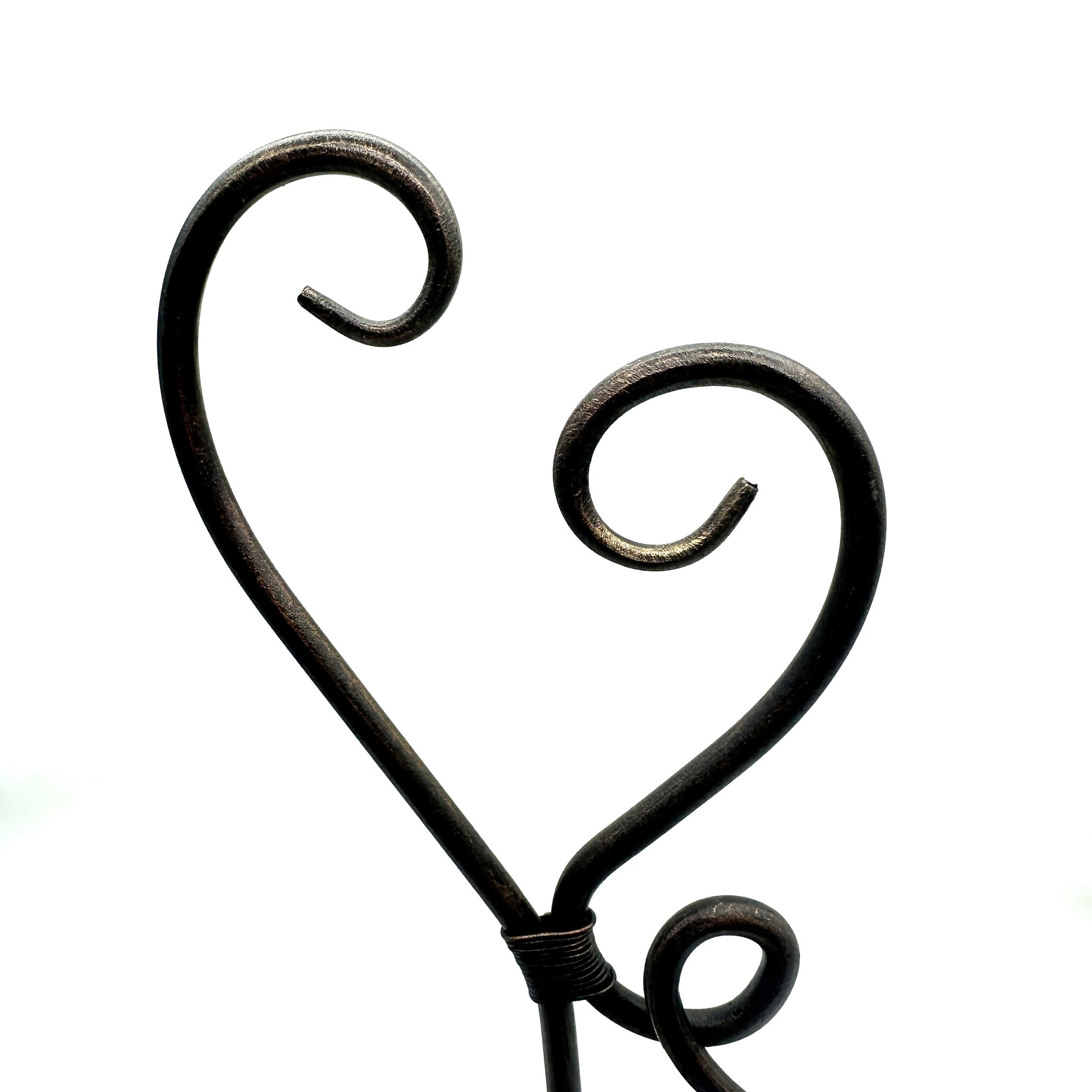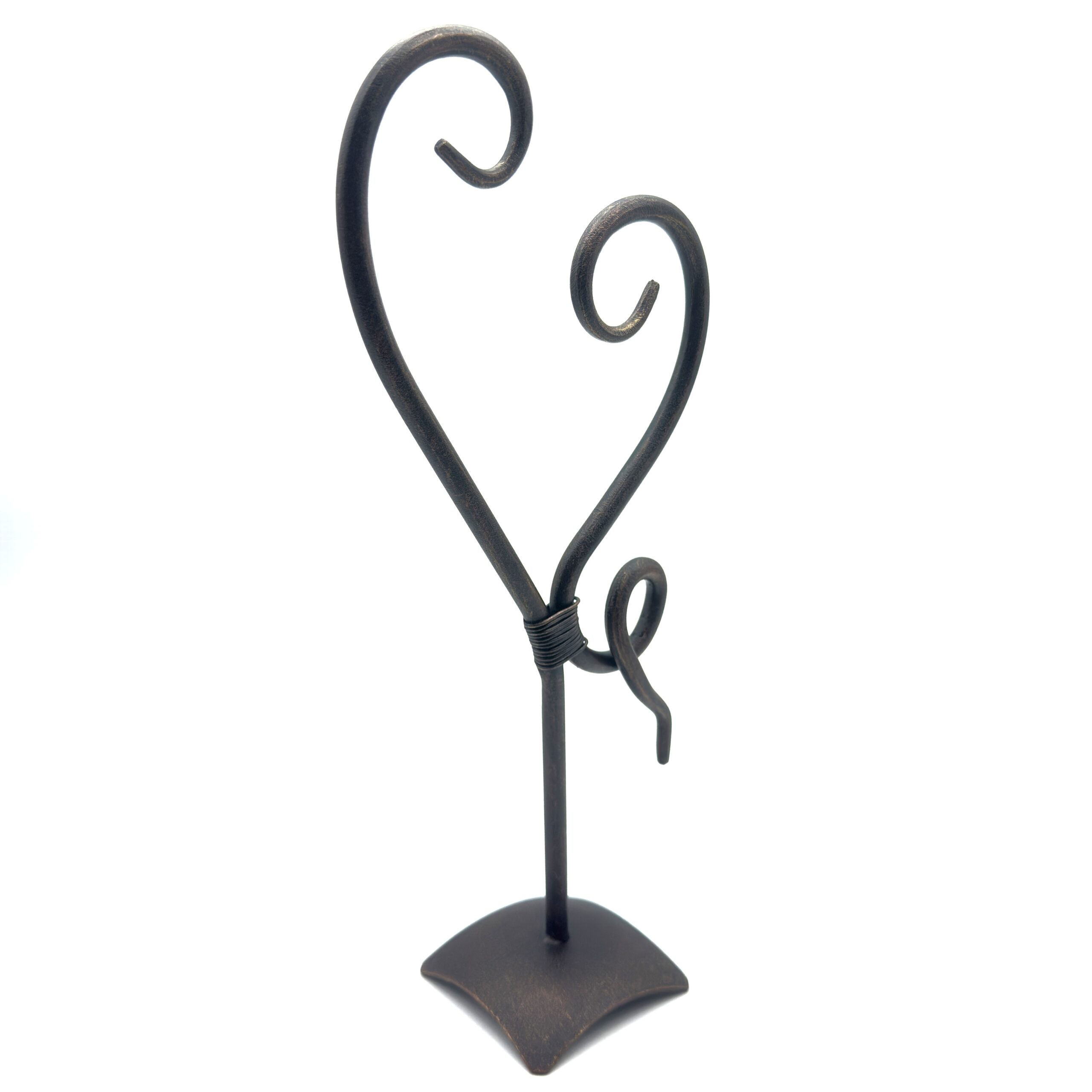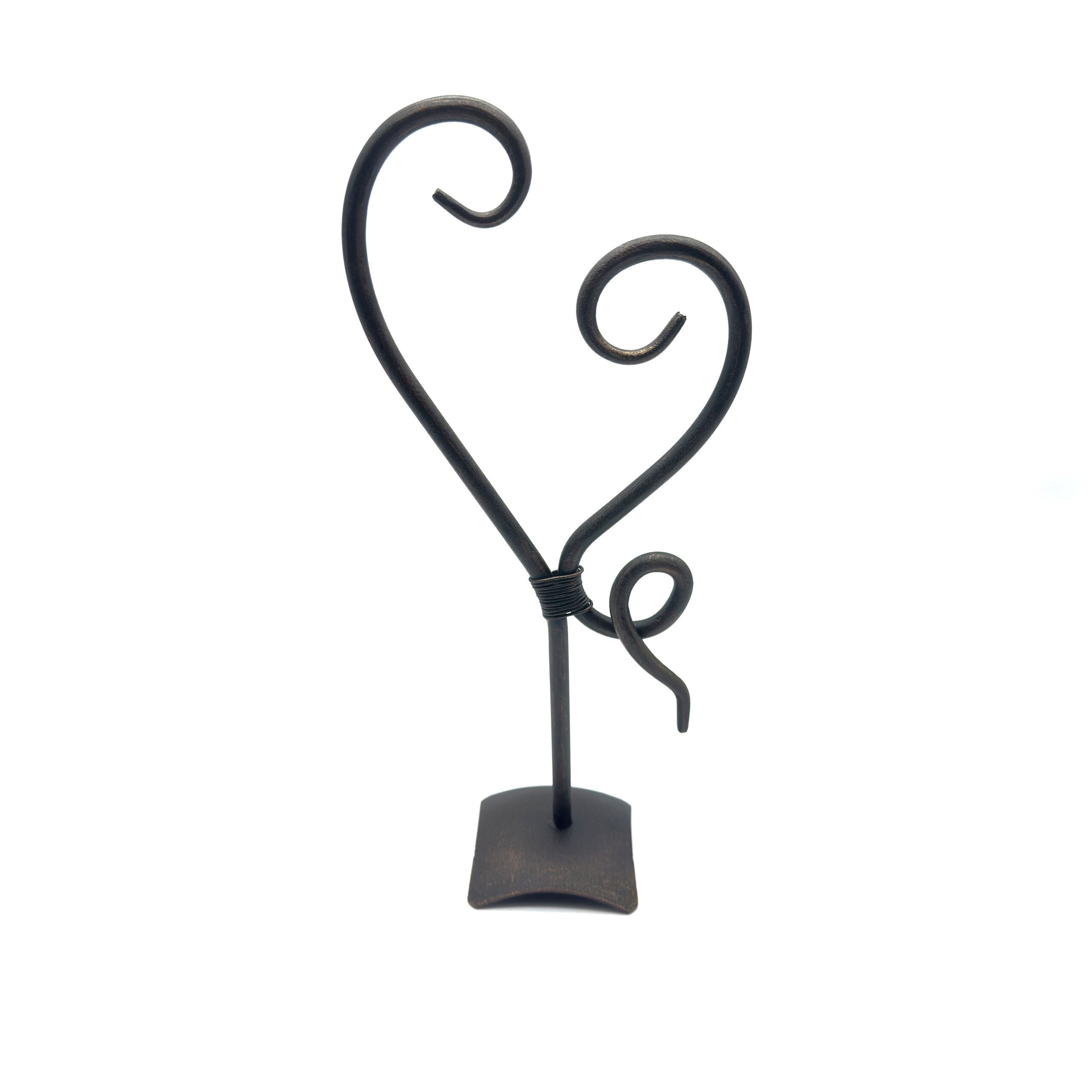 A timeless symbol of affection. This 31cm handmade wrought iron sculpture features an asymmetrical heart silhouette and intricate central wire wrapping finished in a warm antique patina. It is the perfect centerpiece for your console table or mantle.