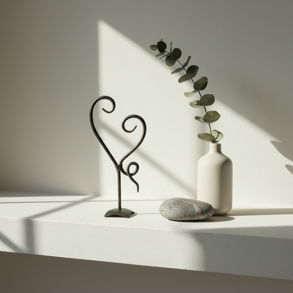 Versatile Tabletop Elegance 🌿 Whether placed in a cozy reading nook or a formal living room the curved square base ensures stable placement on any flat surface. It serves as a beautiful daily reminder of love and a stunning example of contemporary metalwork for any modern rustic aesthetic.