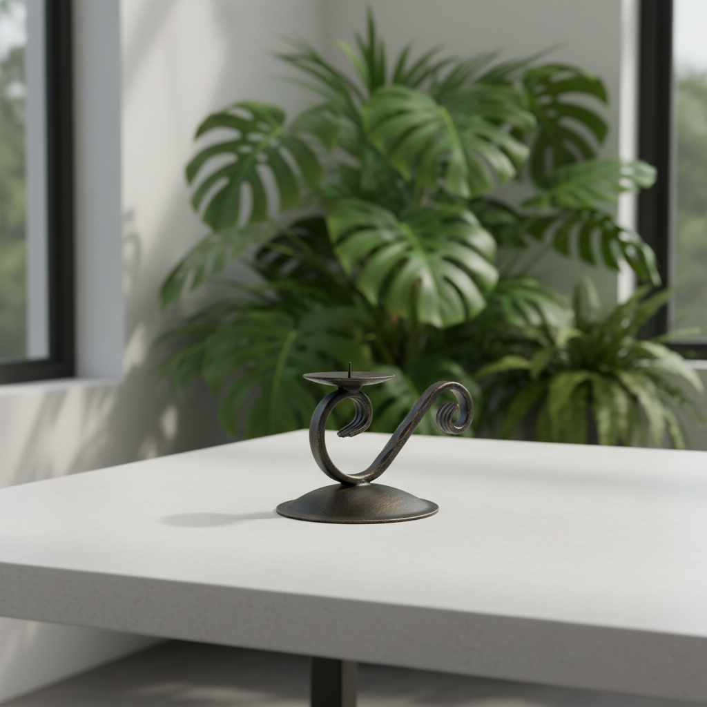 Hand Forged Iron Candle Holder 11″ (28cm) Antique Patina Finish Single Light Sculptural Centerpiece