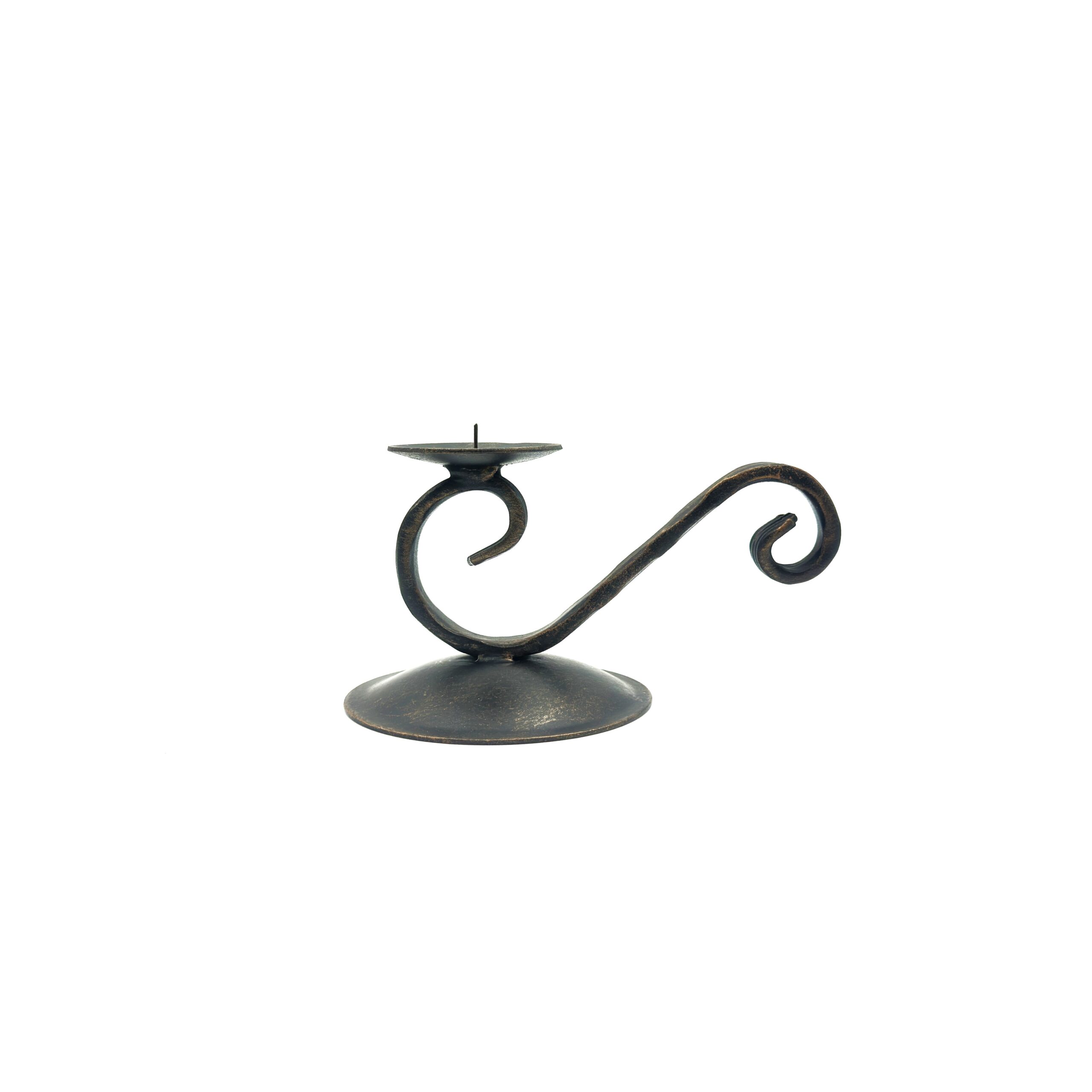 Hand Forged Iron Candlestick 15″ (39cm) Antique Patina Finish Single Light Sweeping Scroll Centerpiece