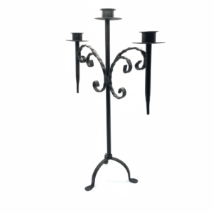Hand Forged Wrought Iron 3 Light Candelabra (Antique Patina) Tall Floor or Table Candle Holder