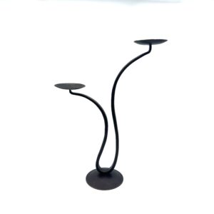 Hand Forged Iron Candle Holder 14″ (35cm) Antique Patina Finish Single Plate Asymmetrical Scroll Centerpiece