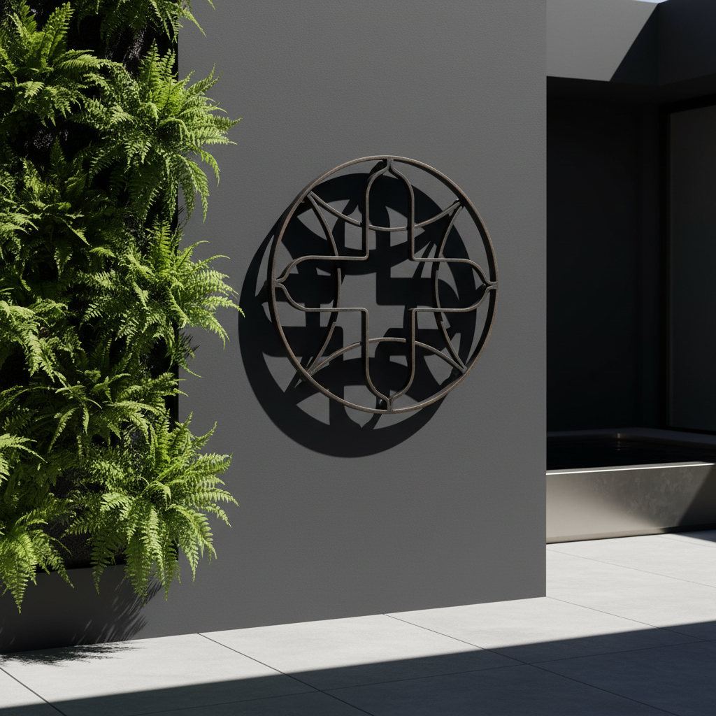 Sophisticated Wall Art Designed for secure wall mounting this circular art piece transforms any hallway dining area or study into a curated gallery space. The solid iron foundation provides a bold presence on your wall making it a stunning example of contemporary metalwork for any discerning homeowner looking for a balance of industrial and rustic aesthetics.