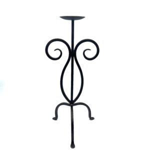 Hand Forged Iron Candle Holder 16″ (40cm) Antique Patina Finish Single Plate Symmetrical Scroll Centerpiece