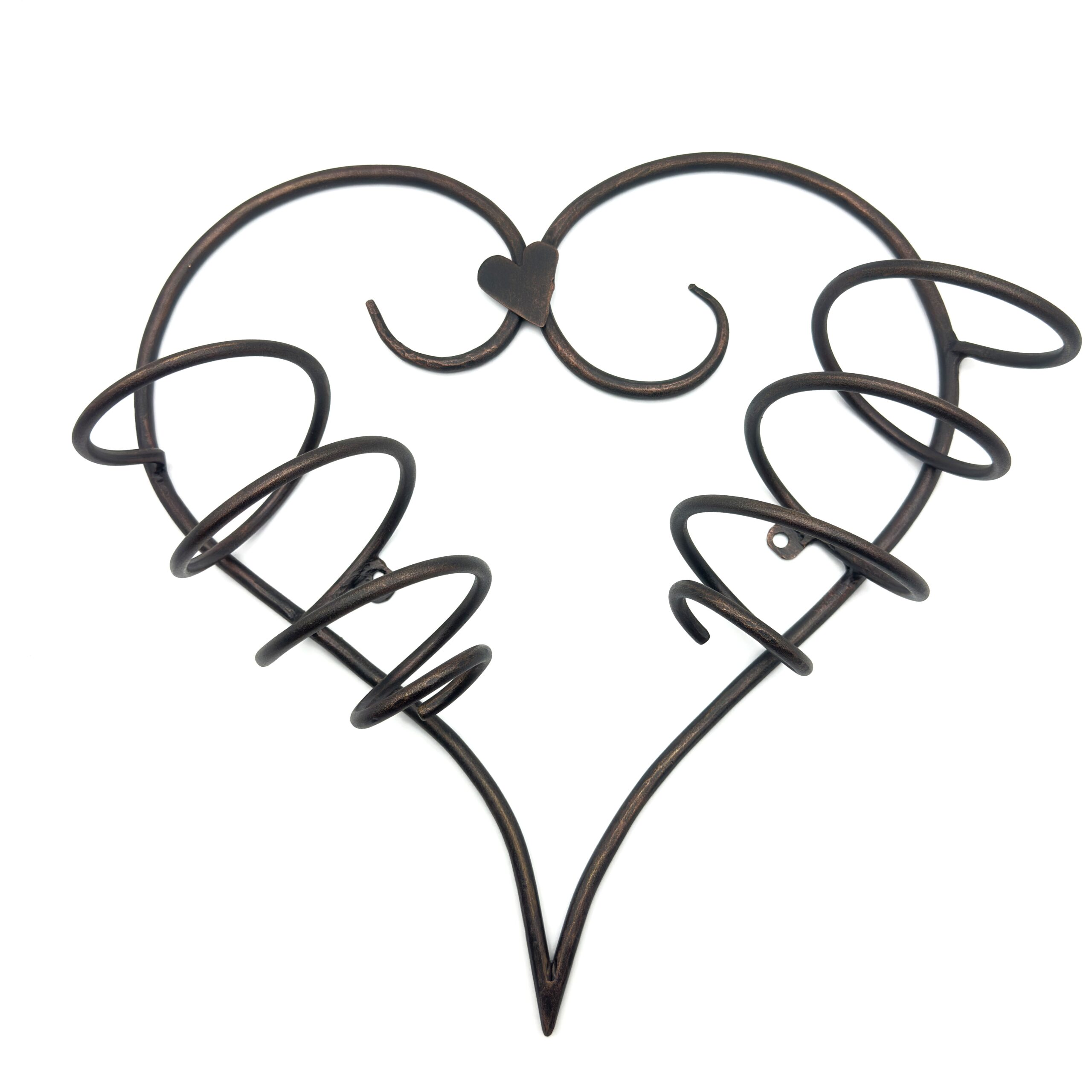 Hand-Forged Wrought Iron Heart Wall Decor (Ruffled Edge with Leaf Finials) Antique Copper Finish
