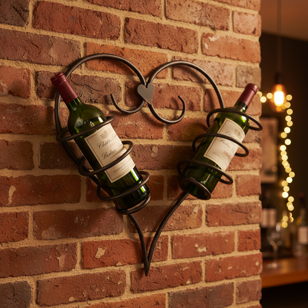 A Glowing Tribute to Romance and Taste 🍷🤎 Elevate your home decor and wine storage with the exquisite charm of this Handmade Wrought Iron Heart Wall Mounted Wine Rack. Standing 39cm tall this piece effortlessly blends modern minimalism with classic craftsmanship. The graceful curves and heart silhouette bound by authentic wire wrapping details give it a distinct boutique character.