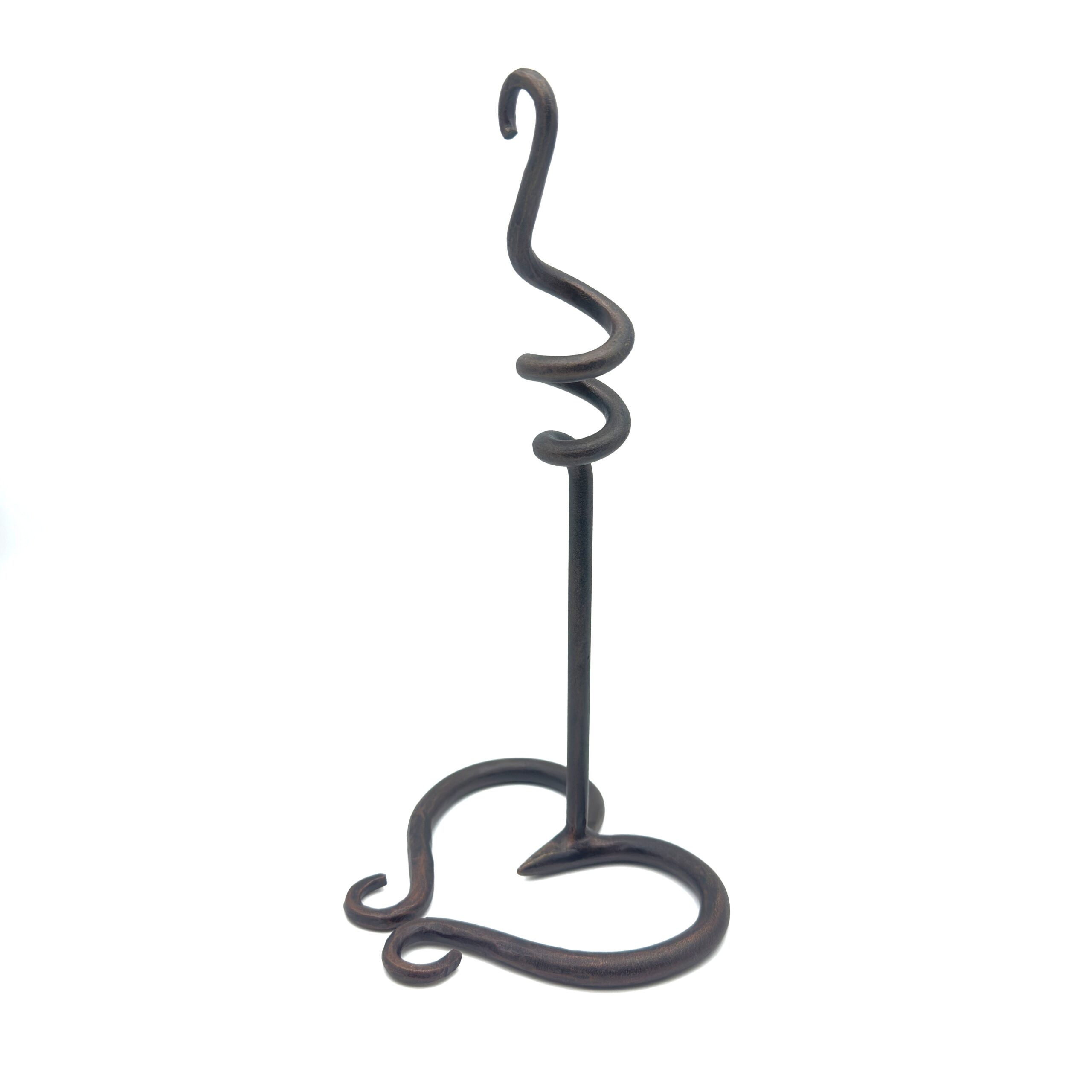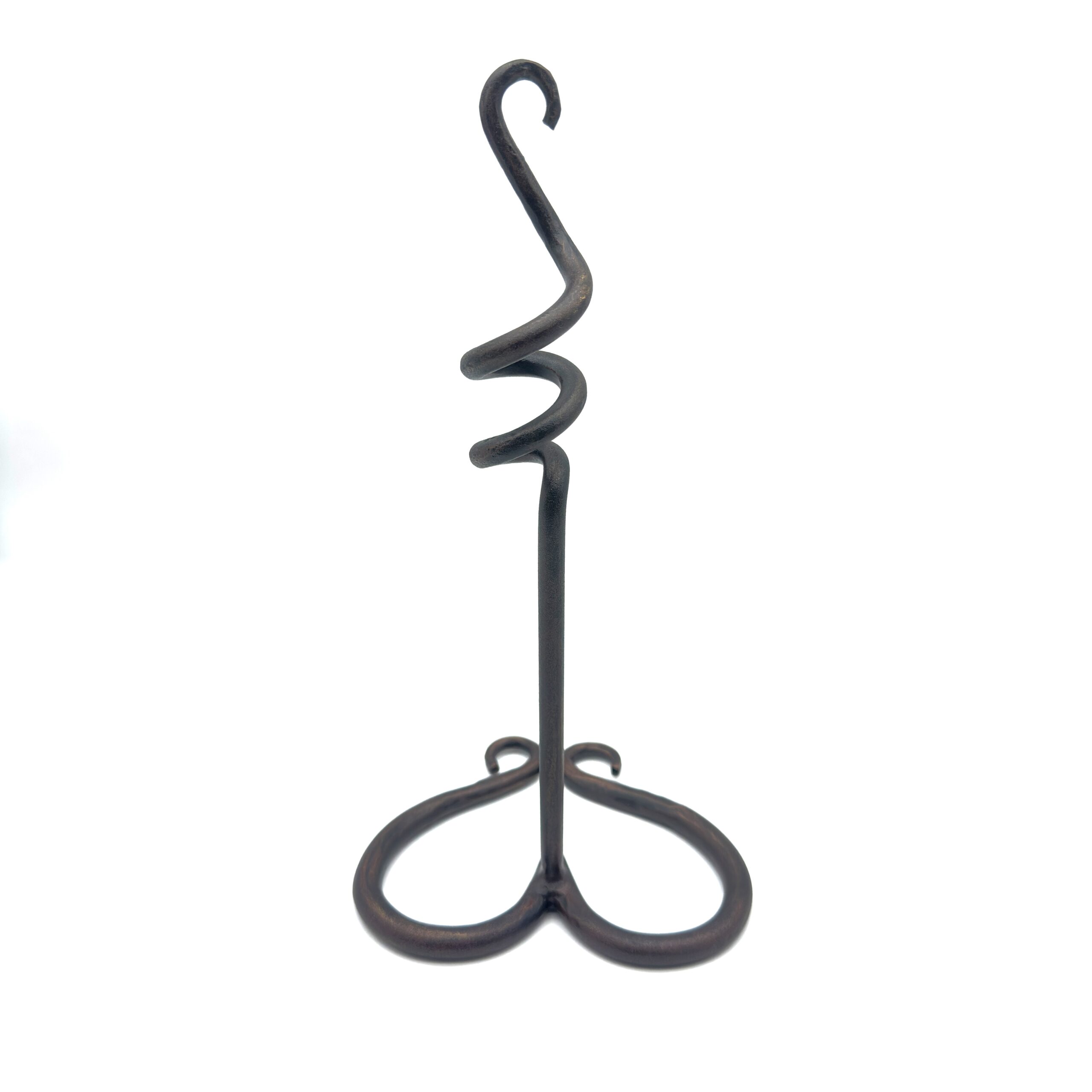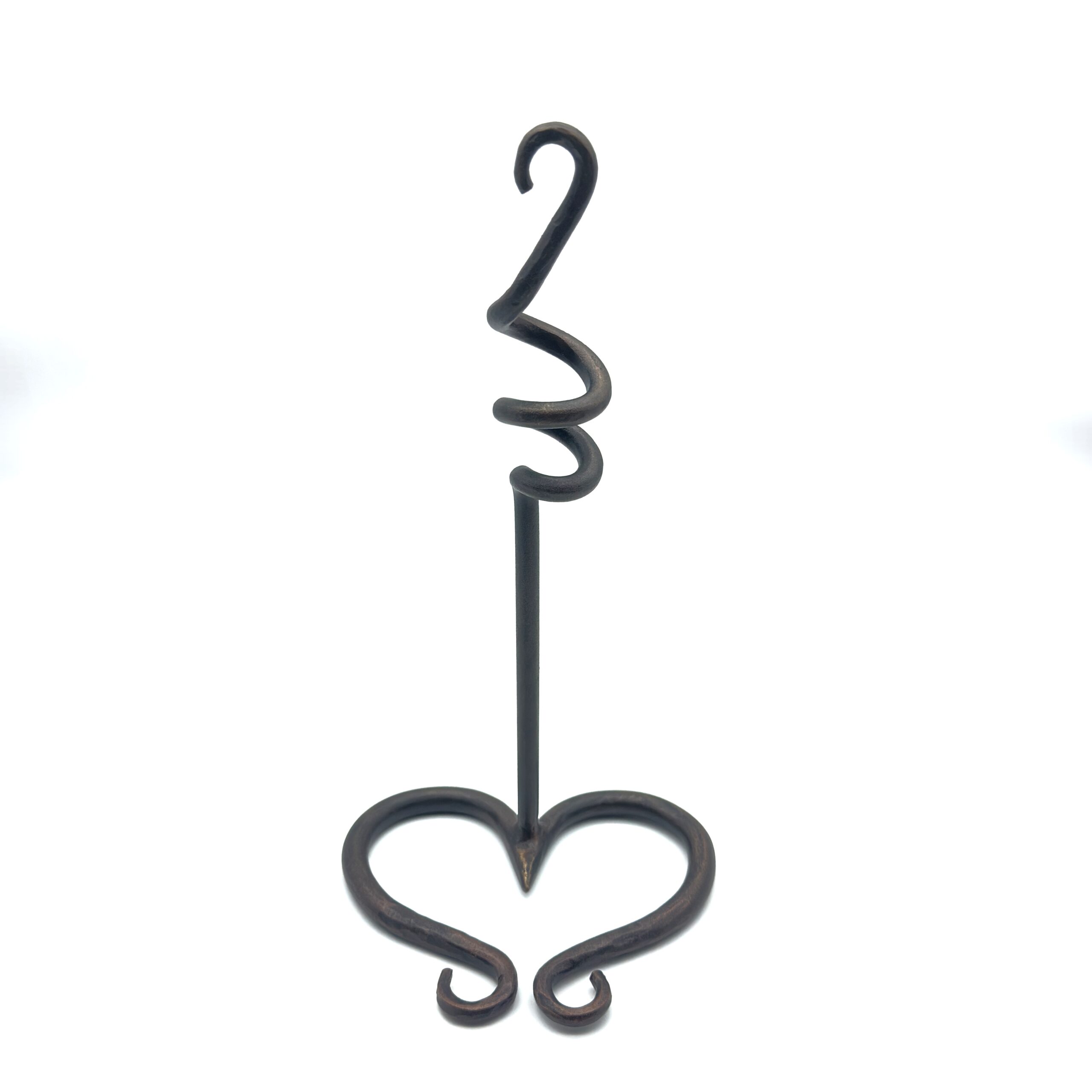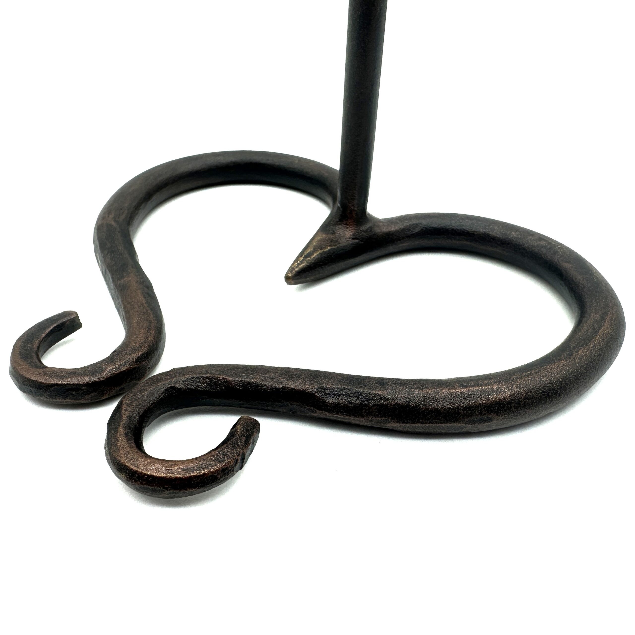 Timeless elegance for your home. This 28cm handmade wrought iron single candlestick holder features a graceful heart silhouette base and a unique spiral accent. Finished in a warm antique patina it brings sophisticated charm to any setting.
