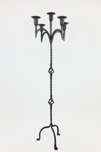 Hand Forged Wrought Iron Floor Candelabra 50″ (127cm) Antique Copper Patina 5-Arm Candle Holder Gothic Medieval Wedding Decor