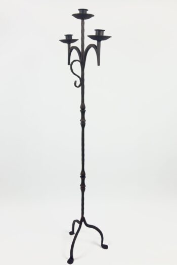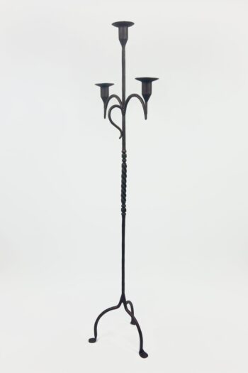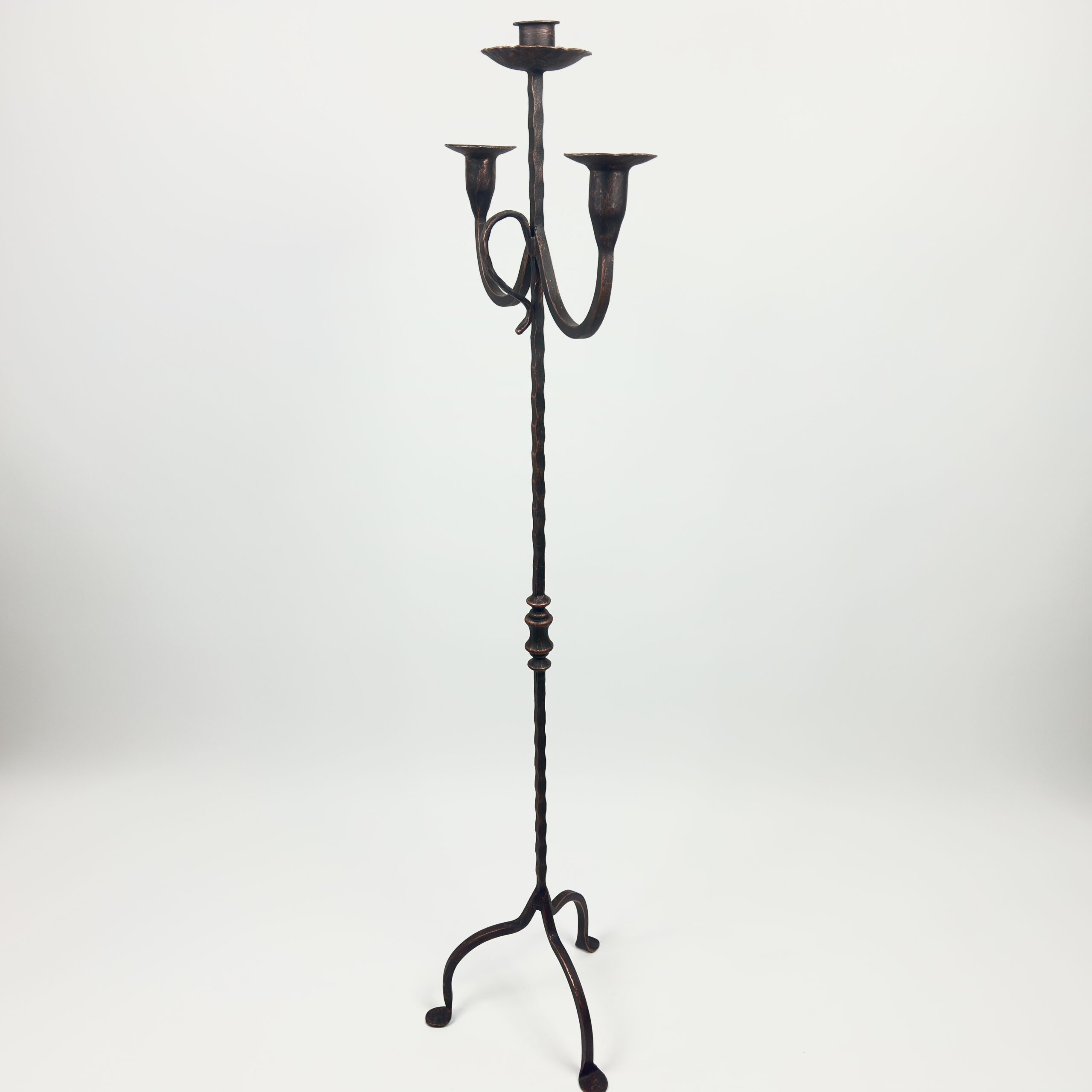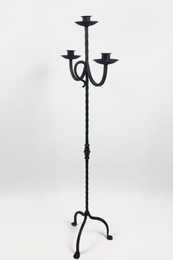 Hand Forged Iron Floor Candelabra 50.5″ (128cm) Antique Copper Patina 3-Arm Twist & Scroll Design Rustic Wedding Decor