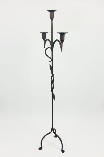 Hand Forged Iron Floor Candelabra 50″ (126cm) Antique Copper Patina 3-Arm Vine & Leaf Detail Rustic Decor