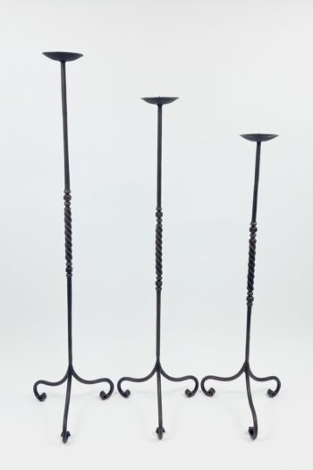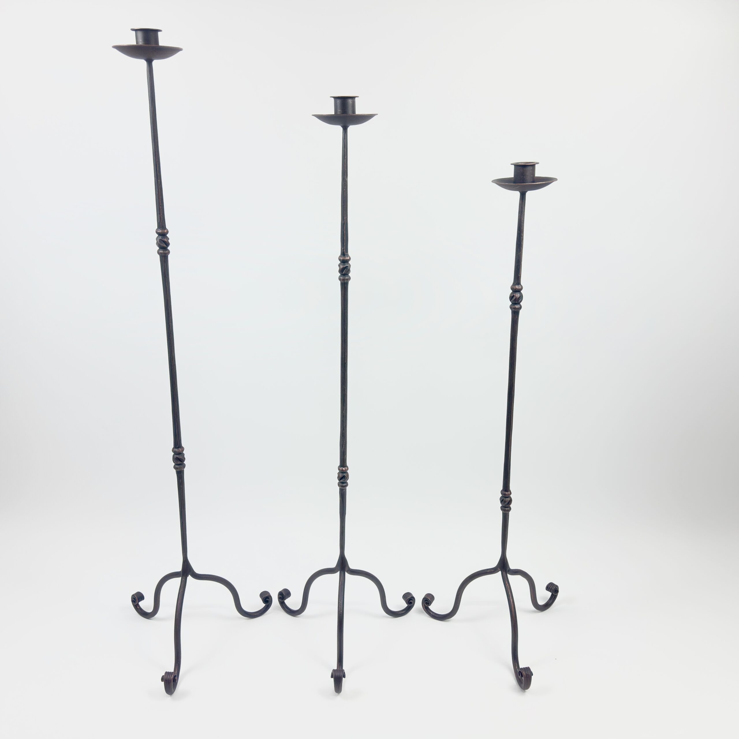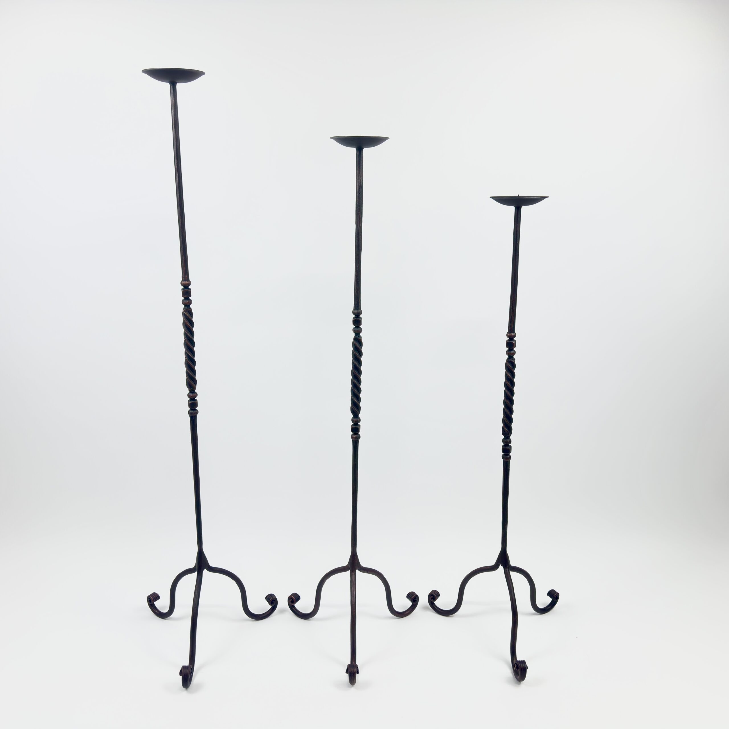 Hand Forged Iron Candelabra Set of 3 (93-113cm) Antique Copper Finish Barley Twist Stem with Wide Scroll Base