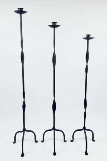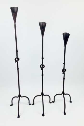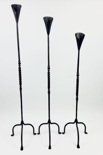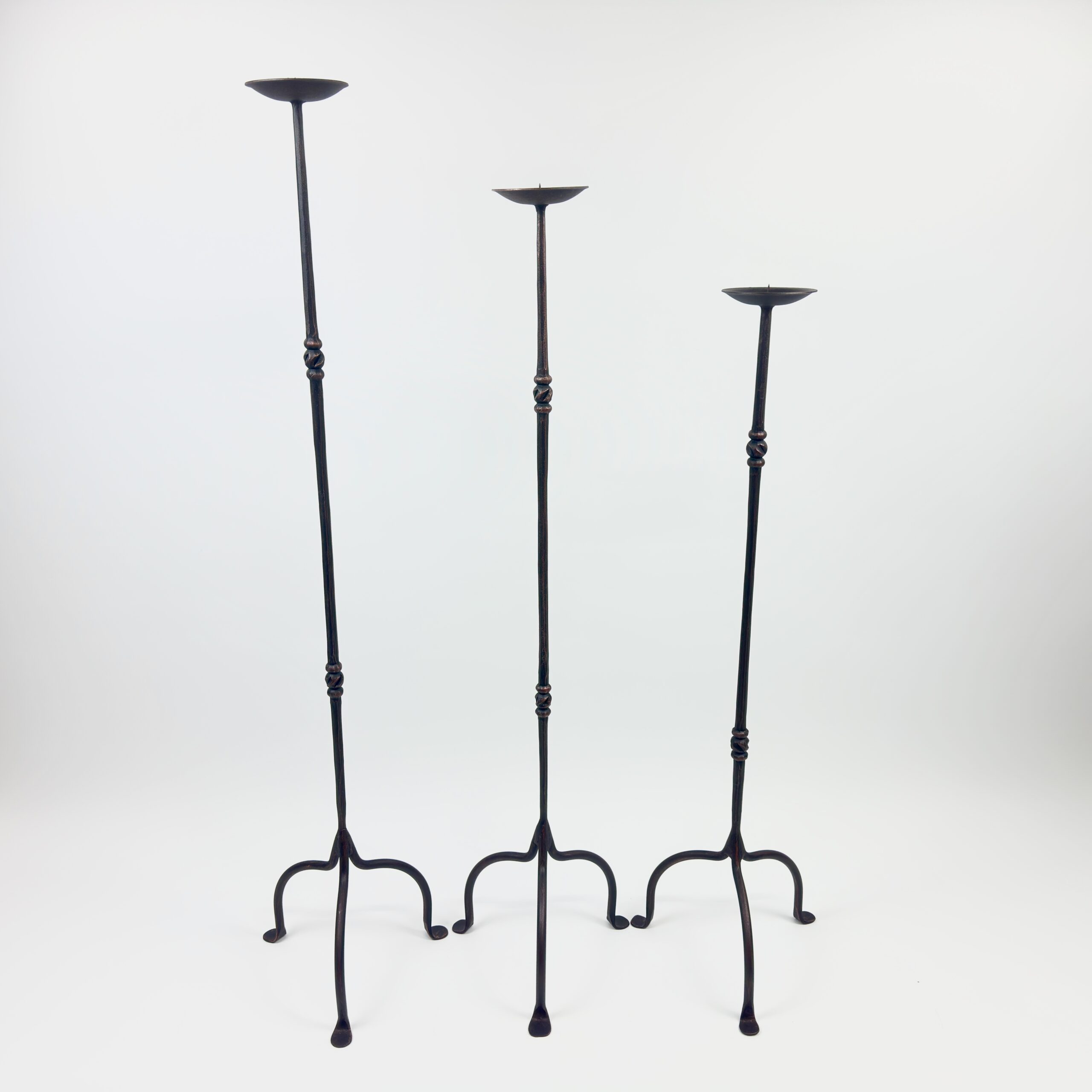 Hand Forged Iron Candelabra Set of 3 (90-110cm) Antique Copper Finish Knotted Stem with Conic Cup