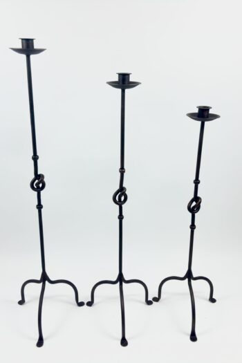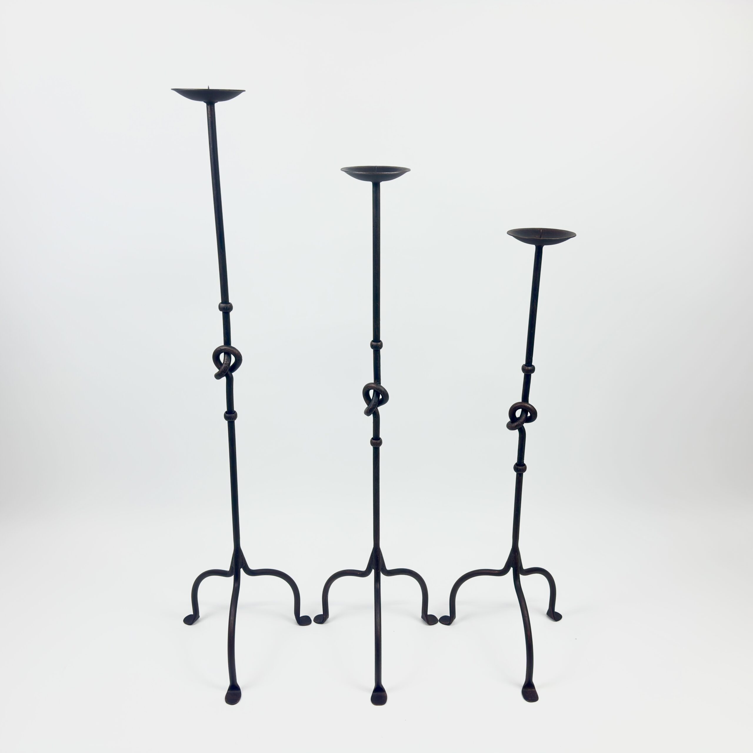 Hand Forged Iron Candelabra Set of 3 (82-101cm) Antique Copper Finish Knotted Stem with Arched Base